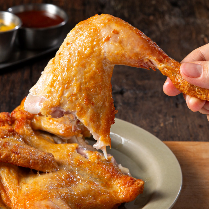 옛날식 치킨을 유명 브랜드 레시피 그대로 가져왔어요! 통째로 튀겨내 원하는 부위를 뜯으면 드러나는 촉촉한 속살, 그리고 한 입 가득 바삭한 겉면의 식감을 즐길 수 있죠. 엄선한 국내산 닭고기를 사용했으니 믿고 쟁여보세요.