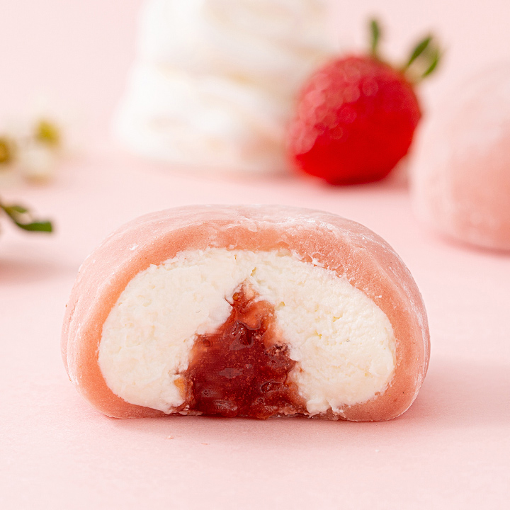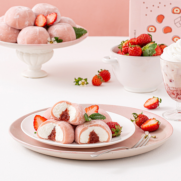 한 번쯤 해보셨죠? 입 크게 벌려서 생크림을 한 입 가득 머금은 다음 딸기를 베어 먹는 행복한 상상! 쿠캣의 시그니처 인기 상품 딸기쏙 찹쌀떡은 생크림과 딸기퓨레를 넣은 더블 필링이에요. 두 번 몰아치는 달달한 매력에 푹 빠져보세요.