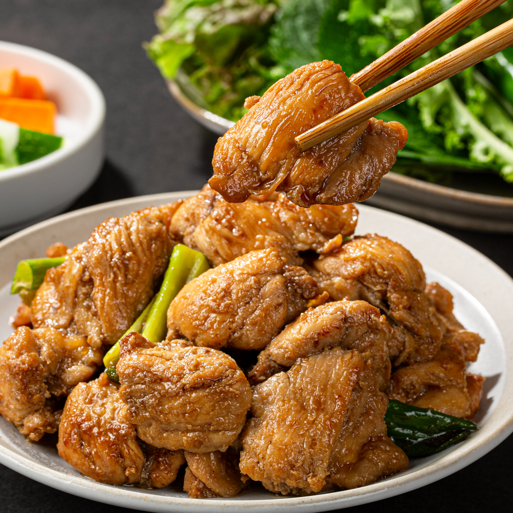 국내산 냉장육으로 만들어 한입 베어물면 촉촉하고 부드러운 청년푸줏간 간장 닭갈비. 단짠단짠 매력의 깊은 간장 양념이 고기에 쏙 배어, 씹을수록 감칠맛이 퍼져요. 밥 반찬은 물론, 야식이나 캠핑 요리로도 간편하게 즐기기 좋은 메뉴죠. 누구나 좋아할 달큰하고 풍미 깊은 간장 닭갈비를 만나보세요.