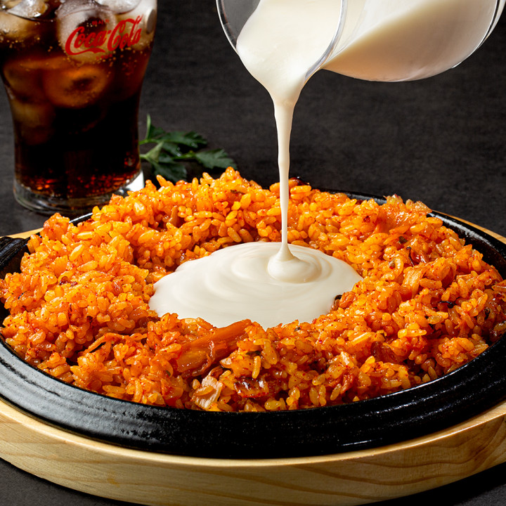 매콤한 김치볶음밥에 크림소스를 더하면 고소함과