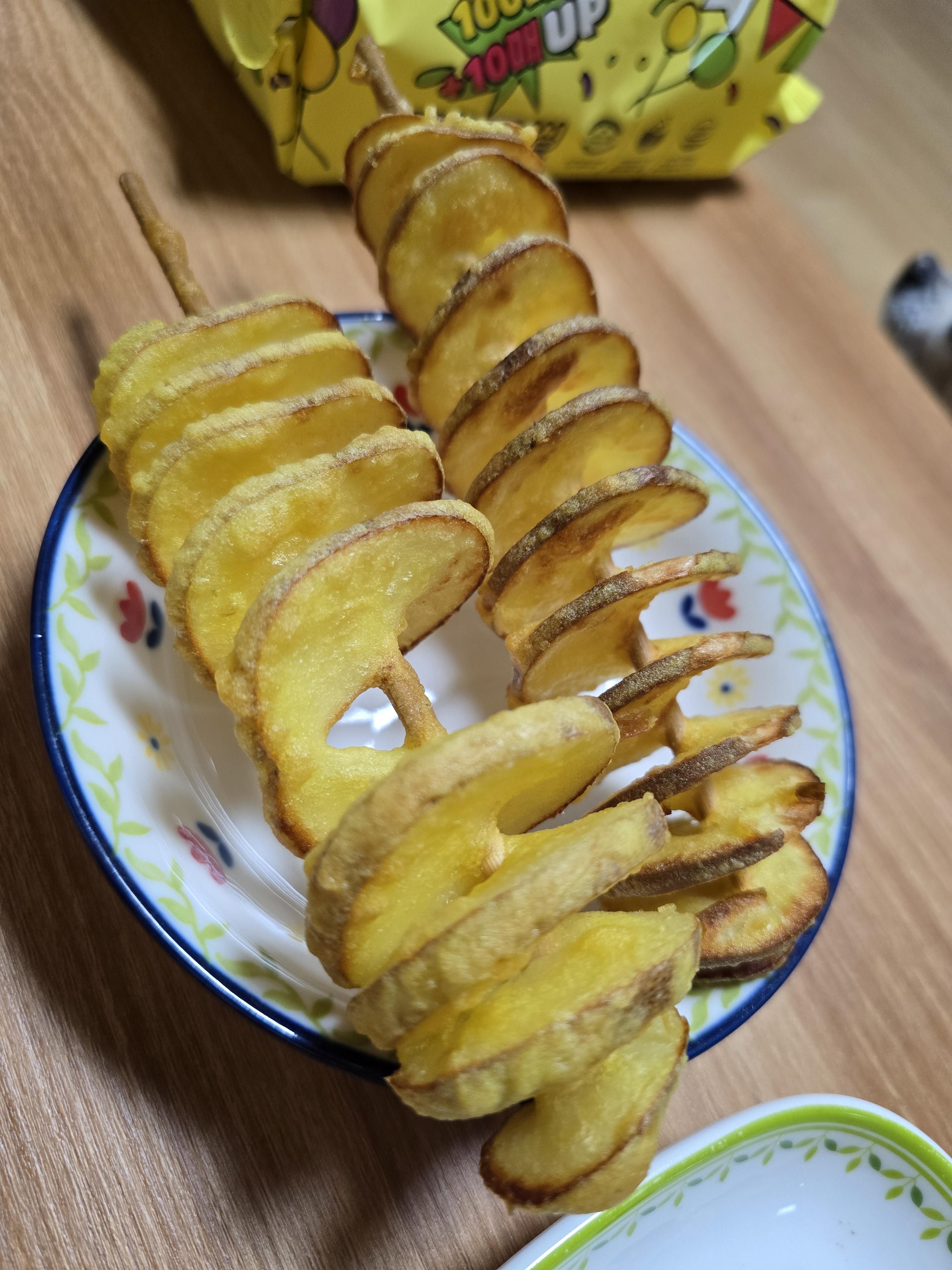 회오리감자 좋아하는데 휴게소 아니면 먹을 일이 거의 없었는데 쿠캣에 등장하다니!! 크키도 에어프라이어에 딱 들어가서 좋아요