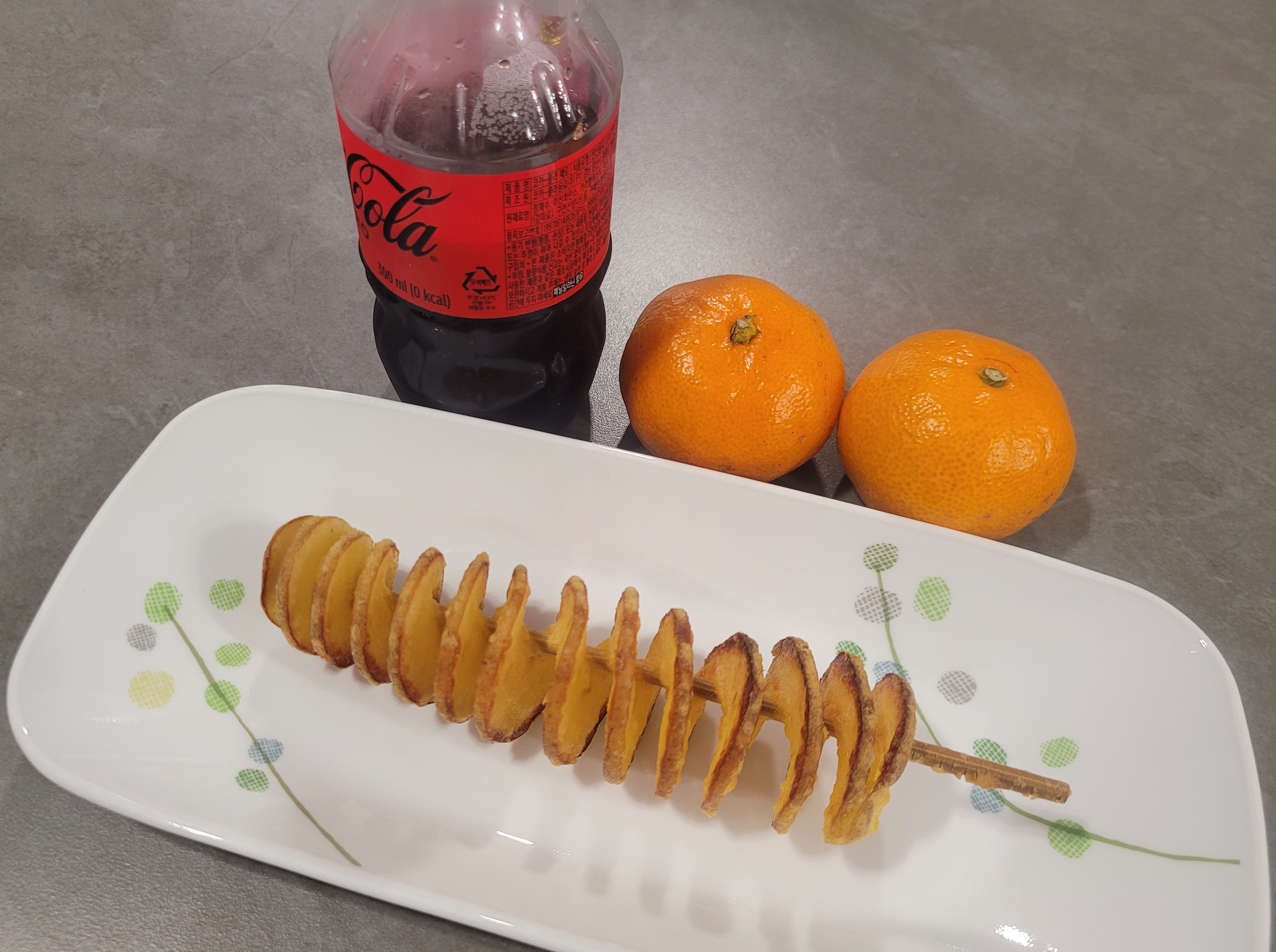 간식으로 회오리감자 하나 귤 두개 먹으려고 준비했는데 결국 먹자마자 에어프라이어 다시 돌려서 회오리 감자 두개 더 먹었어요 ㅠㅠ