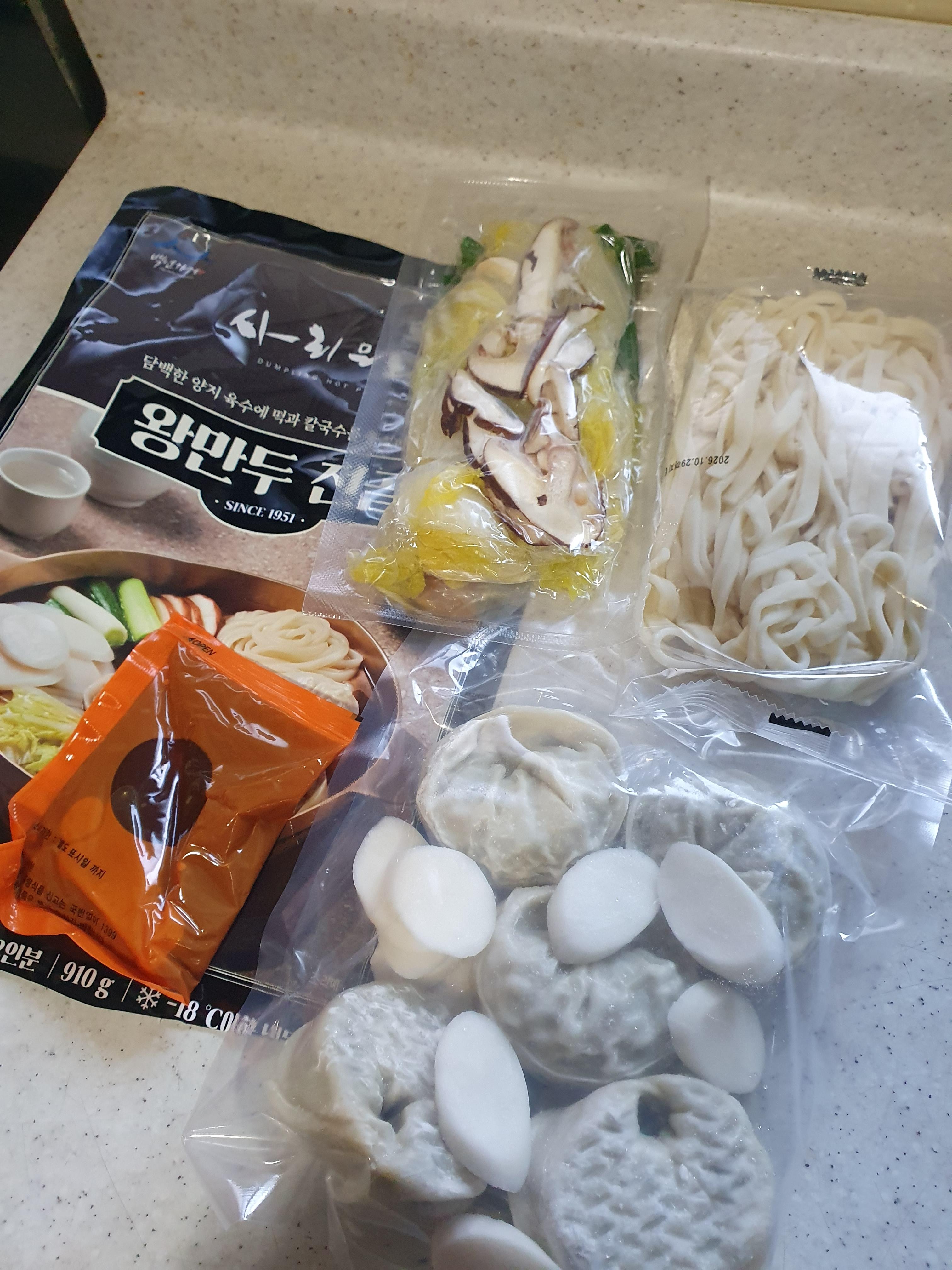 왕만두전골!! 만두전골 넘 좋아해서 자주 먹으러 다녀요. 이번에 쿠캣에서도 사리원제품 판매가 되어 얼른 구매했어요 딱 레시피 준수해가며 조리했습니다. 와~~국물의 감칠맛이. 만두는 진짜 왕만두네요 숟가락에 올리니 엄청 커요.말그대로 왕만두! 반으로 갈랐을 때 내용물도 실하구요. 무엇보다 각종 채소들에 떡국떡,국수사리까지 개별 포장된 거 넘 좋았어요. 총 5개의 만두가 들어있는데 2개만 먹어도 만족감이 커요. 왕만두 전골 얼큰한 맛도 같이 판매해 주세요. 한 끼 뜨끈하게 잘 먹었습니다.