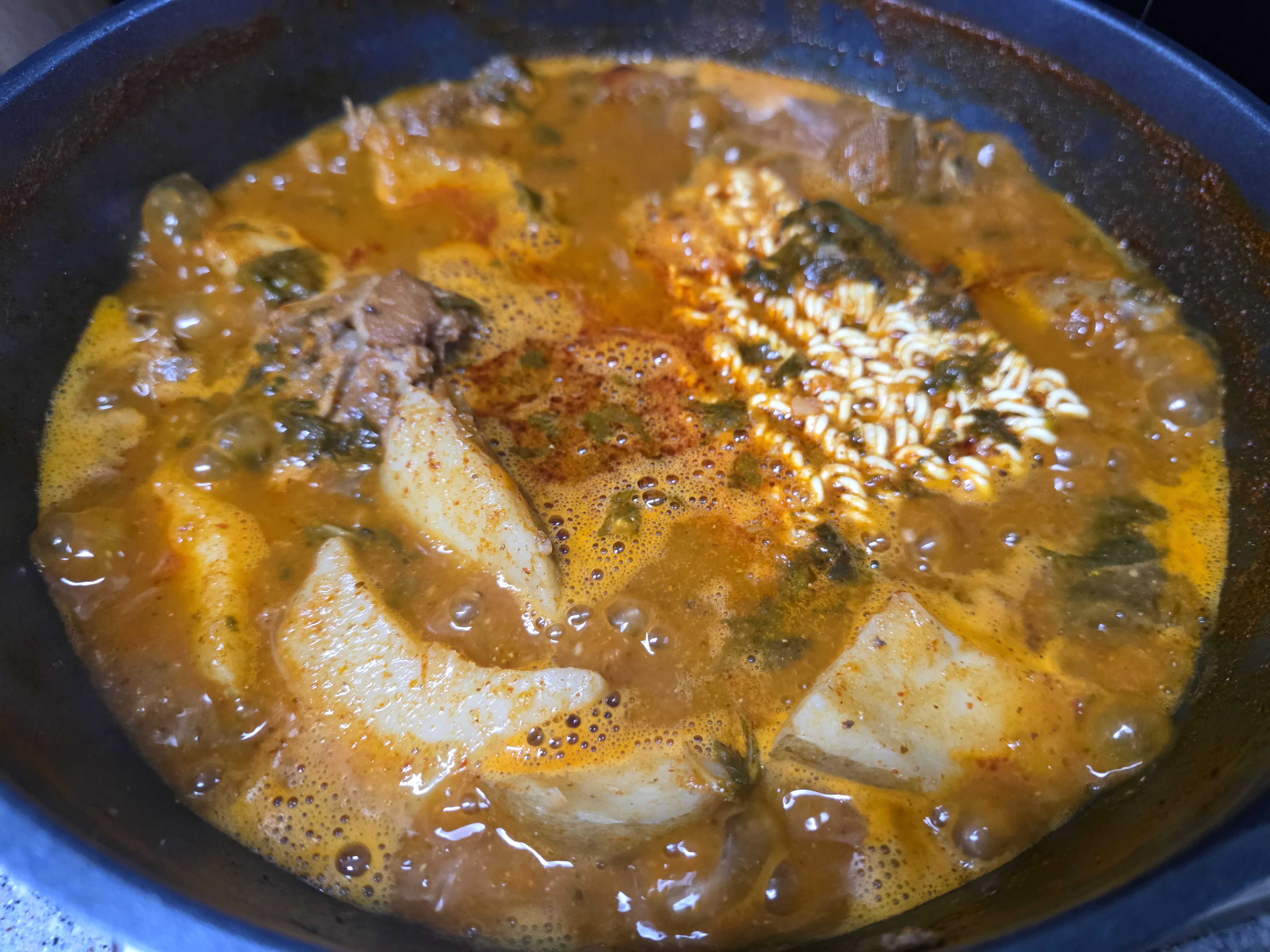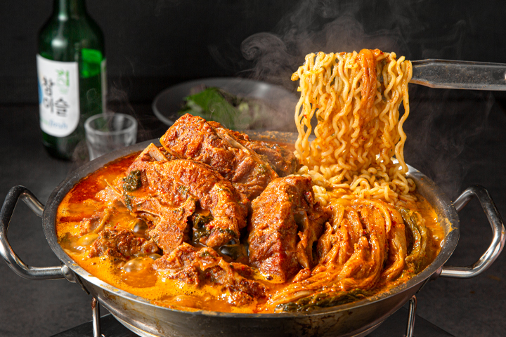 에 든든하게 어울리는 묵은지 감자탕이에요.