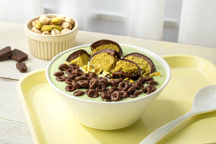 플레인 요거트 또는 말차 요거트에 딥초코 두바이 쫀득 모찌를 토핑으로 함께 즐겨보세요. 초코 코팅된 모찌의 달콤함과 요거트의 상큼함이 잘 어울려요.