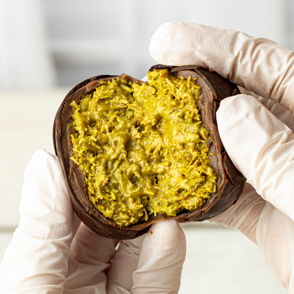 제품 아랫면 중 초코 코팅이 덜 된 부분에 일부 전분가루가 보일 수 있으나, 이는 제조 공정상 자연스럽게 발생하는 현상으로 안심하고 드셔도 됩니다.