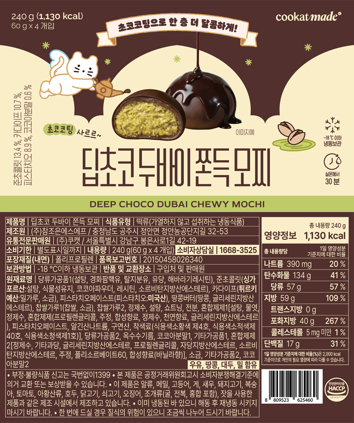 쿠캣메이드 딥초코 두바이 쫀득 모찌 240g(60g*4개입)