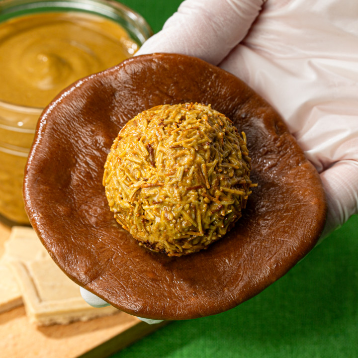 피스타치오 스프레드를 구매했다면 놓치기 아쉬운 두쫀쿠! 한 입 베어 물면 진한 원물의 고소함을 느낄 수 있어요.