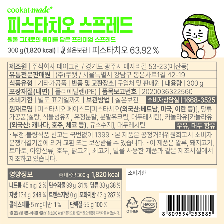 쿠캣의 피스타치오 스프레드는 300g으로