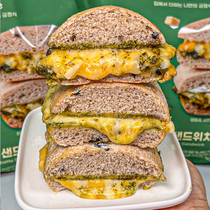 바질페스토에 치즈를 듬뿍!고소한 바질 치즈 샌드위치