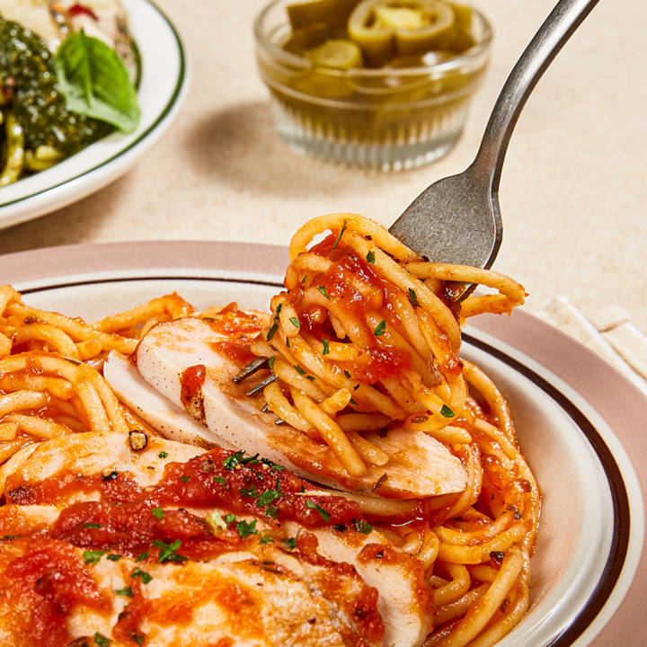 표면에 빨간 점이 보여요 페퍼크림 파스타의 닭가슴살 표면에 빨간 점이 보일 수 있어요. 이는 원재료인 고춧가루이니 안심하고 섭취해 주세요.