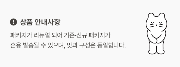 식품을 유통할 수 있는 날짜인 ‘유통기한’이 아닌, 식품 섭취에 안전 문제가 없는 기한인 ‘소비기한’을 표시하는 제도로 변경되었습니다. 23.12.31 이내 생산된 제품 중 일부는 유통기한으로 표시될 수 있으며, 상품에 따라 순차적으로 적용됩니다.