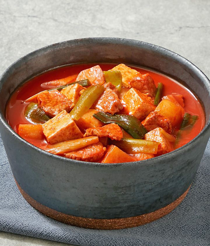 양파만 좀 썰어넣고 고추장찌개 끓여 동그랑땡 부쳐 같이 밥 먹었는데 완벽했어요. 감자 두부 고기 적당히 들어있고 양도 나름 넉넉해서 둘이서 한끼 찌개로 같이 먹기 딱 좋았어요! 남자친구도 맛있다고 했어요!!