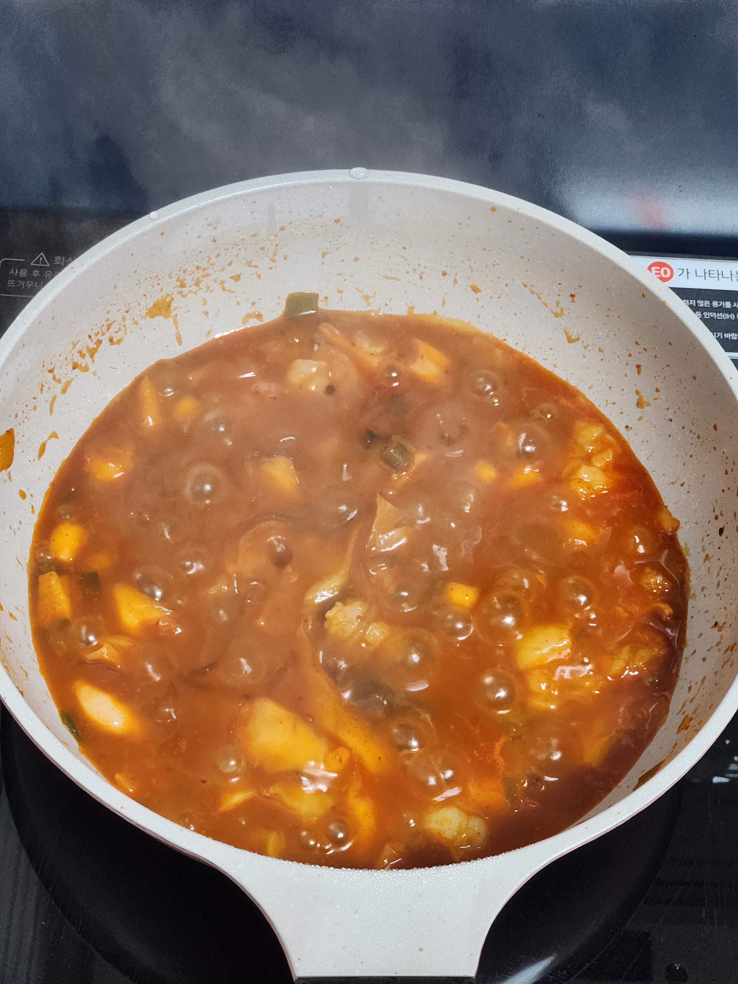 물을 기호에 따라 100~120㎖ 넣은 냄비에 해동한 전골도 넣어주세요. 중불에 10분 정도 조리해 주세요.