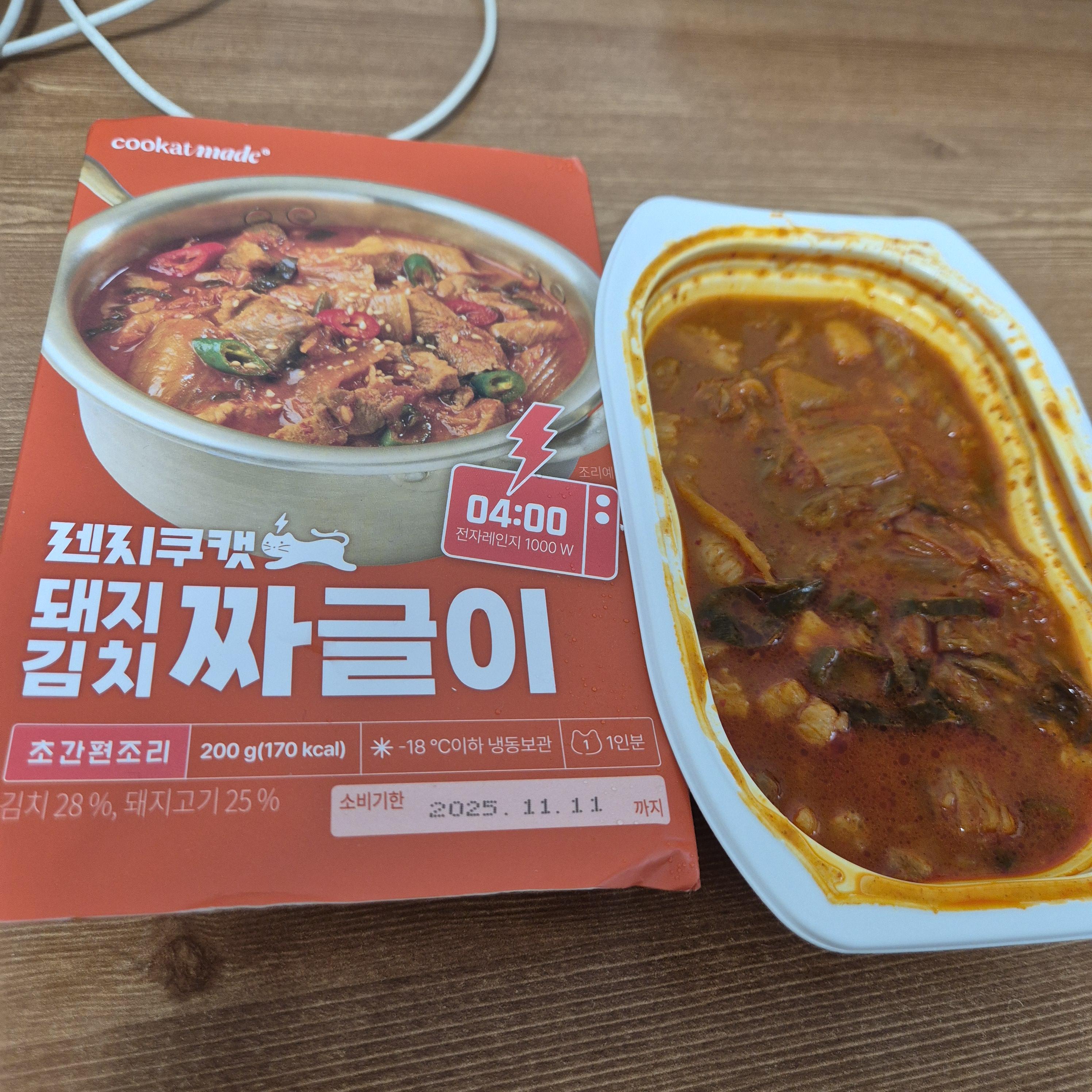 렌지에만 돌렸는데 끓인것 같은 진한 맛이 나고 밥이랑 먹기에 딱 좋습니다 짜글이는 무조건 재구매하려구요!