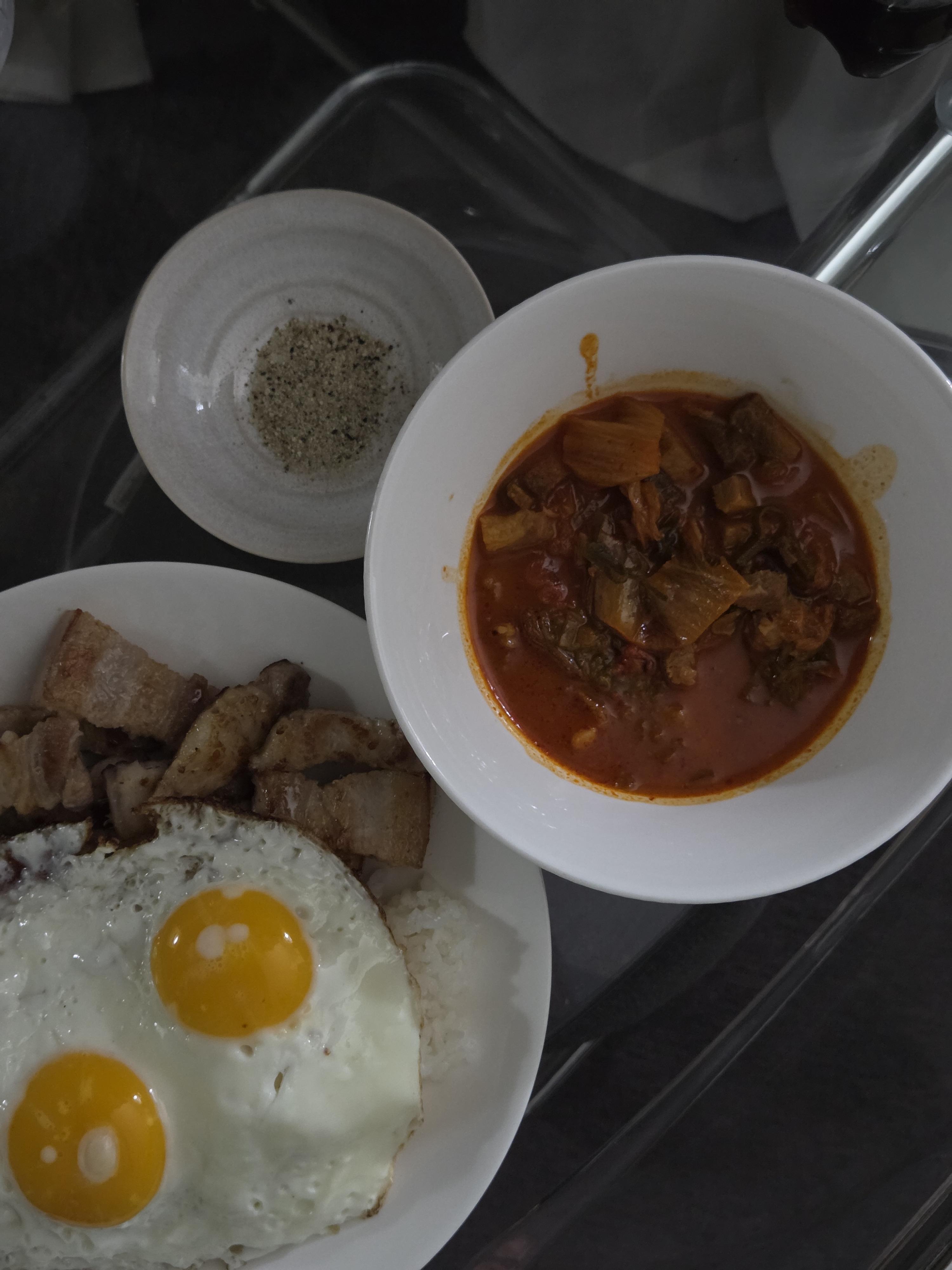 걸쭉한 느낌을 생각했는데 제가 데우고 보니 국물이 조금 더 넉넉했던 것 같아요! 계란후라이랑 먹어도 맛있는데 오늘은 대충만든 계란찜이랑 곁들여 먹었습니다 김찌도 배달시키면 요새는 만오천원 넘는데 간편하게 먹기 넘 좋은 것 같습니다ㅎㅎ
