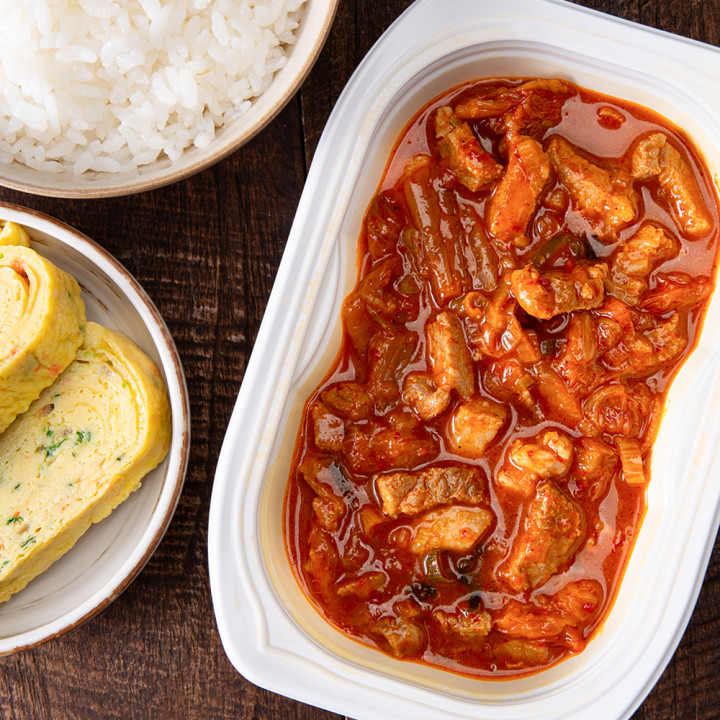 푸짐한 건더기와 김치의 칼칼함이 밥 한 공기로는 모자랄 밥도둑 짜글이에요. 해동도 필요 없이 바로 전자레인지 조리만 해주면 따끈한 집밥이 완성된답니다.