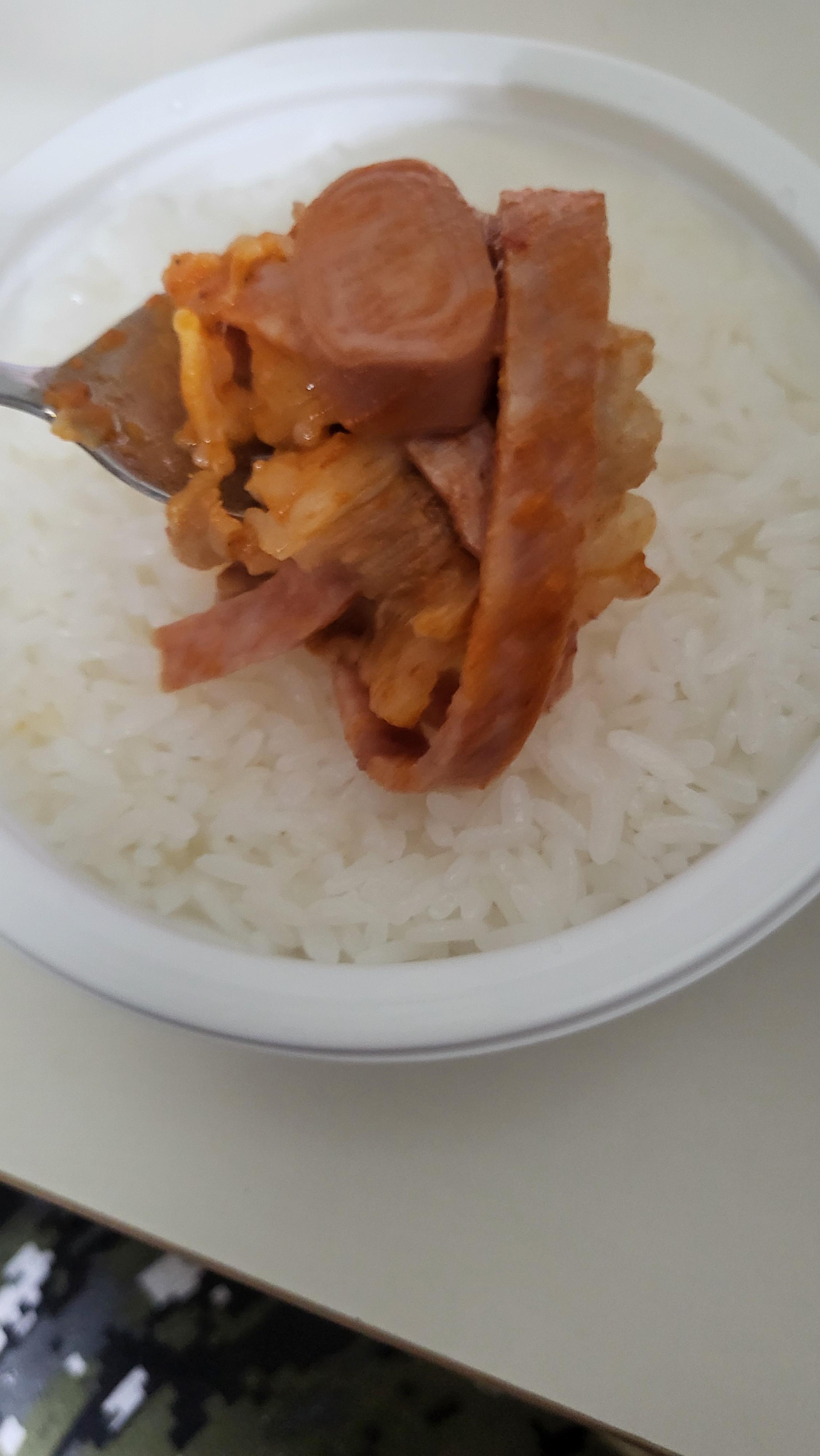 2봉지끓여서 세 사람이 국그릇에 나눠줄려고 한 국자씩 푸면 햄이 푸짐하게