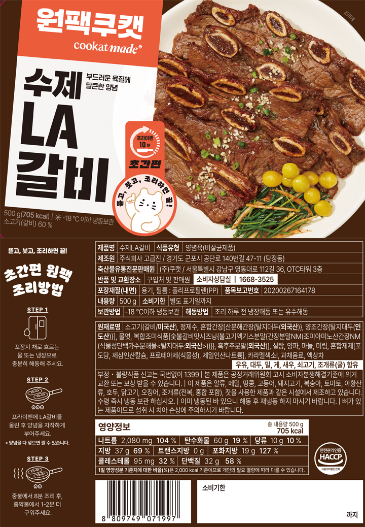 원팩쿠캣 수제 LA갈비 구매했습니다.