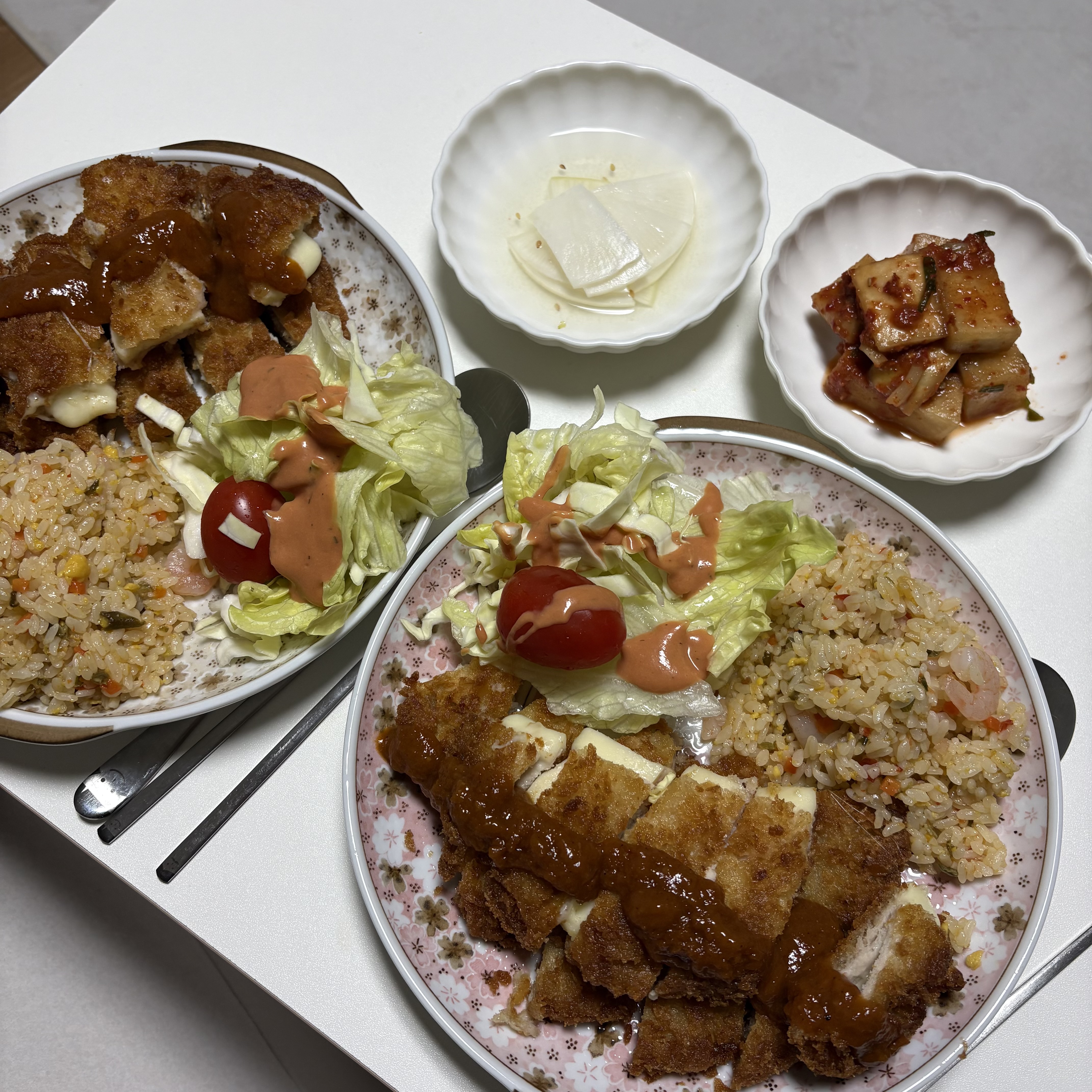 요리 하기 싫은 날 남자는 돈까스 제육이라길래 구매했는데 자기는 안좋아한다더니 엄청 맛있게 먹네요;; 에프에 180도 10분 뒤집어서 10분 튀겼는데 치즈는 미리 전자레인지 돌리고 더해도 될거같아요