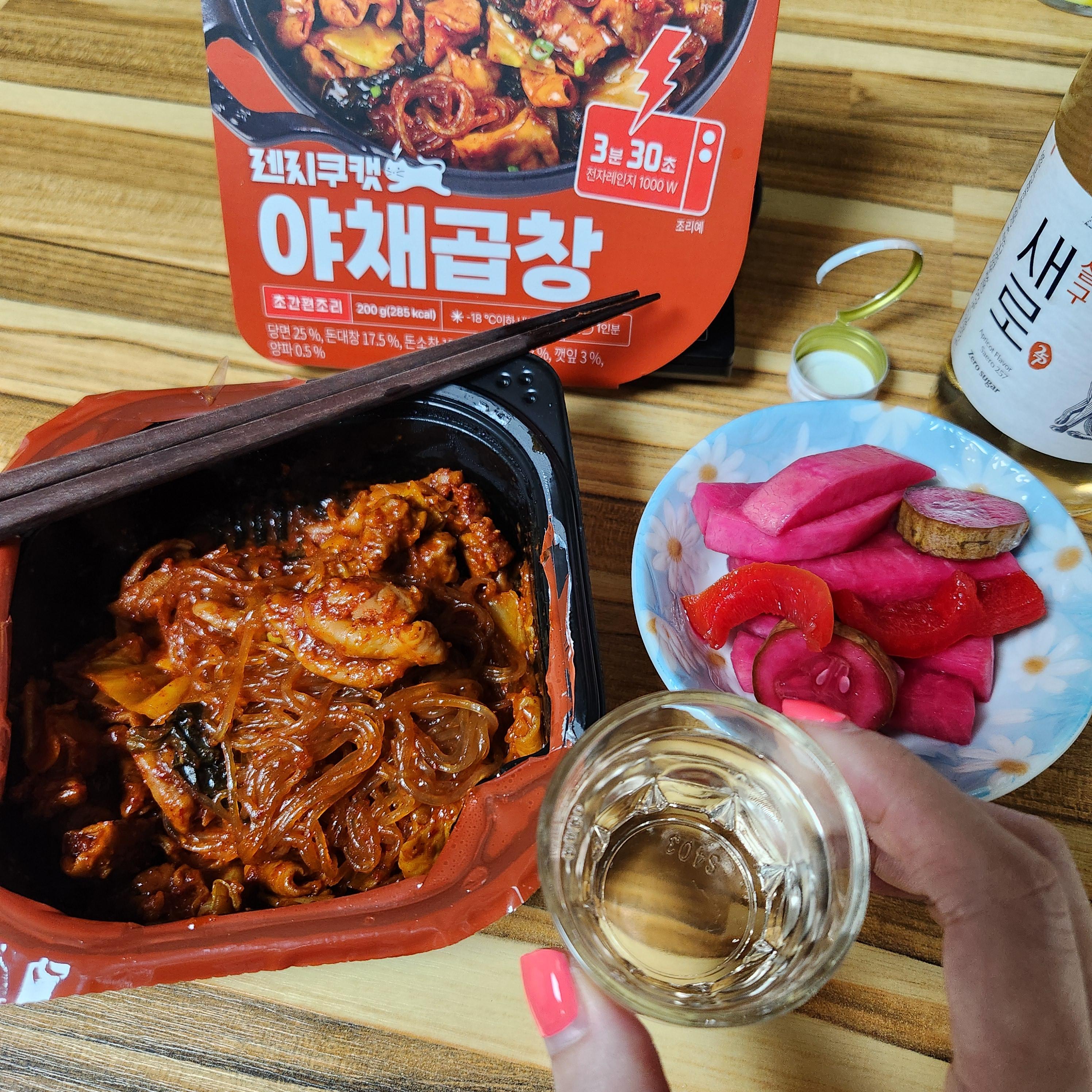 전자레인지 하나로 포장마차에서 먹던 야채곱창의 맛을 느낄 수 있어요. 쫄깃하고 매콤한 돼지곱창에 당면, 깻잎, 양배추를 넣어 감칠맛을 더했어요.