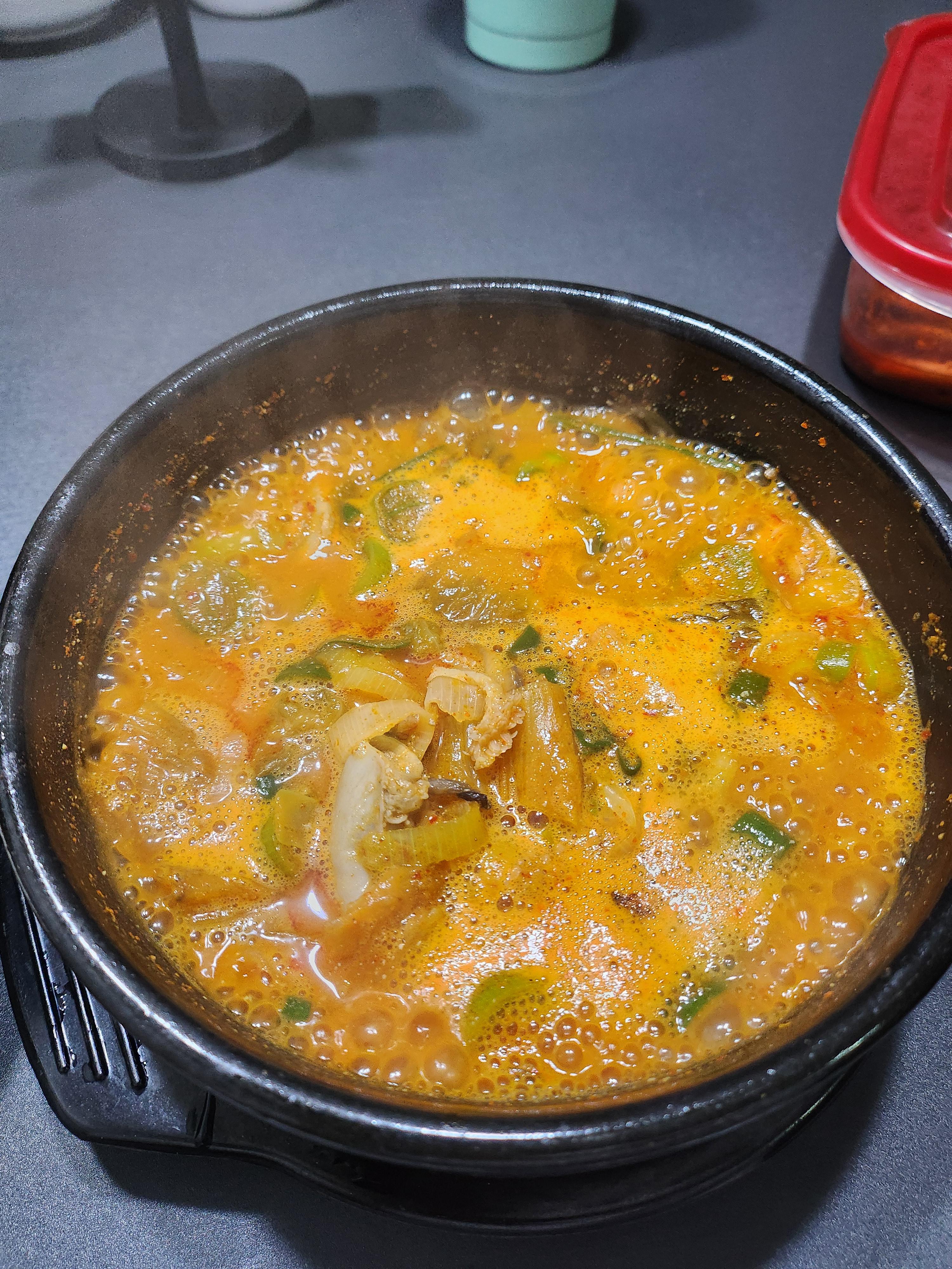 처음 시켜봤는데 해동시켜서 뚝배기에 보글보글
