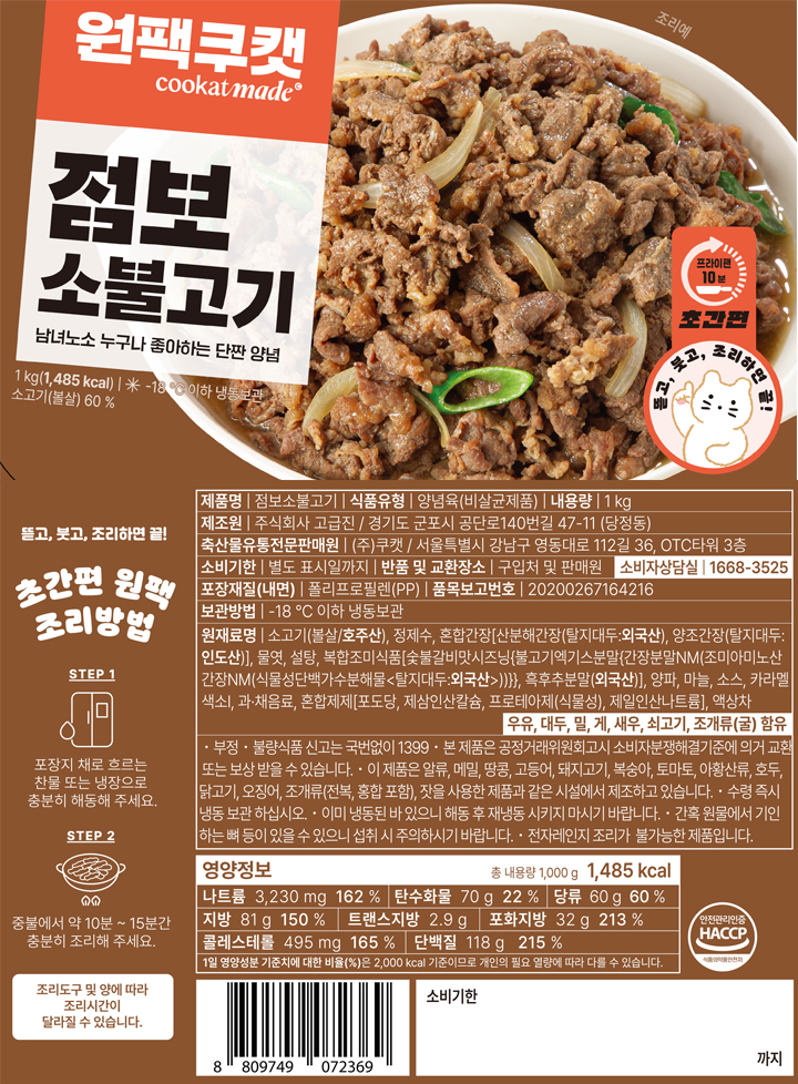 점보 점보소불고기~ 양이 엄청 많아요. 절반씩 소분해놓고 절반만 요리해도 충분하네요. 양파,당근 새송이버섯 대파 조금씩 넣고 같이 볶아주고.. 참기름 통깨 솔솔 뿌려주면 불고기한상 뚝딱 완성.. 원팩쿠캣의 장점이자 매력이죠. 쿠캣덕에 상차리기 쉬워졌어요~