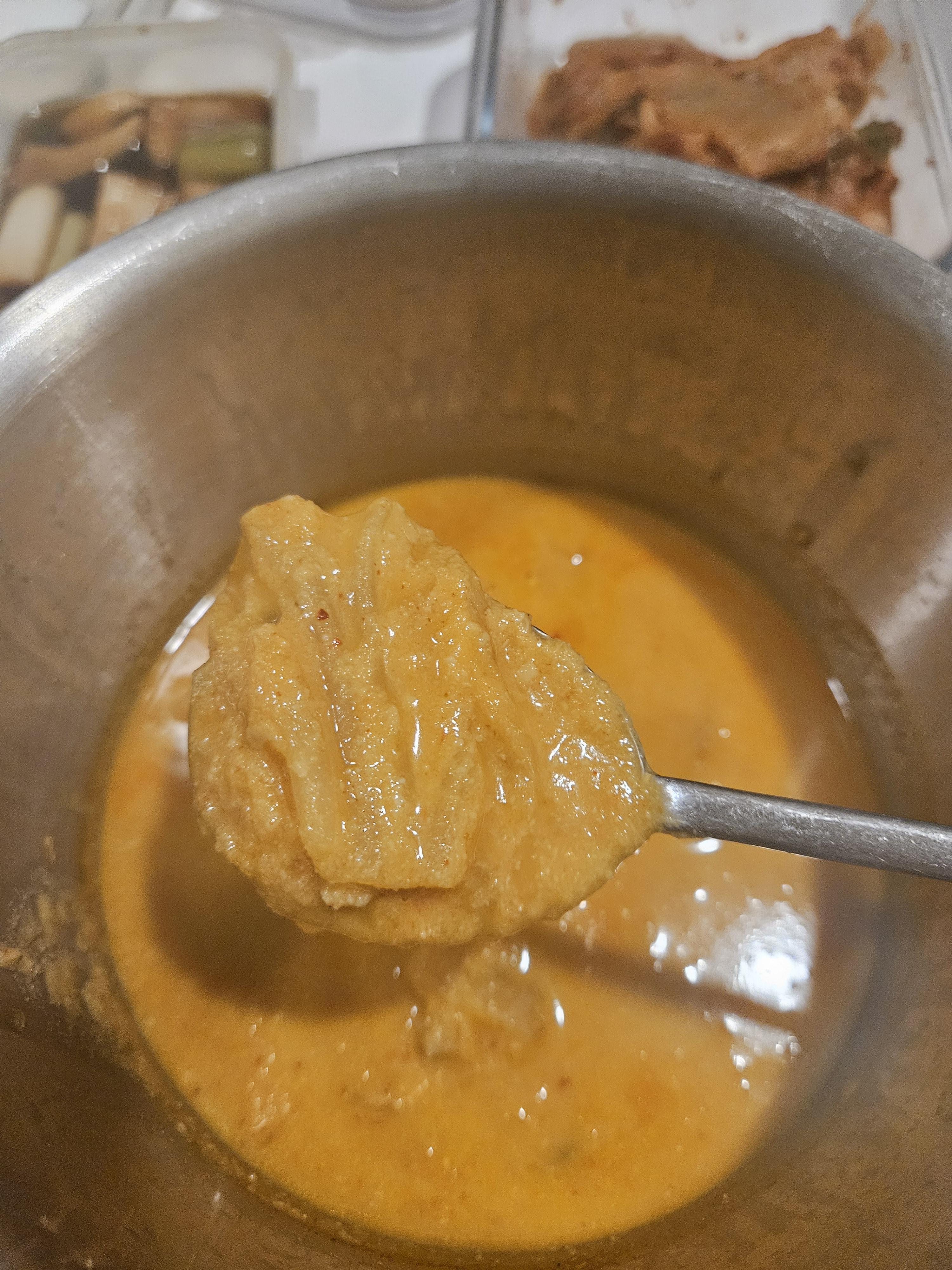 한잔하고 속이 뒤집어져서 급하게 데웠어요ㅎ 엄청 꾸덕하게 밀도가 꽉찼더라구요ㅎ 전 물좀 넣고 데워서 후루룩 거의 마셨어요ㅋㅋ 밥에 말아서 먹으니 속이 확 풀어졌어요 왕추천합니다ㅎ