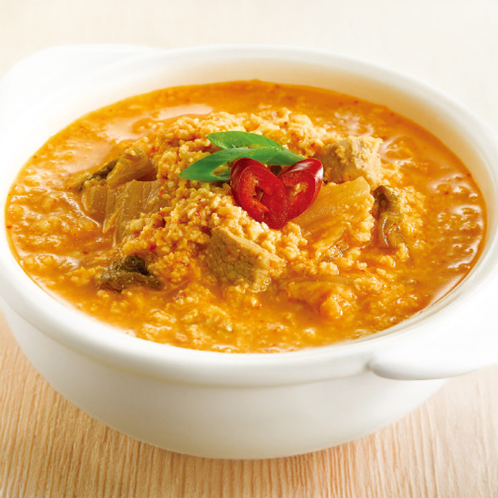 국산 콩으로 만든 비지를 듬뿍 넣어 든든한 비지찌개예요. 새콤한 김치도 함께 넣어 맛의 조화를 살렸어요. 직화 솥에 볶아낸 돼지고기가 감칠맛을 더하고, 진하게 우려낸 돈골 육수의 깊이로 마무리했답니다.
