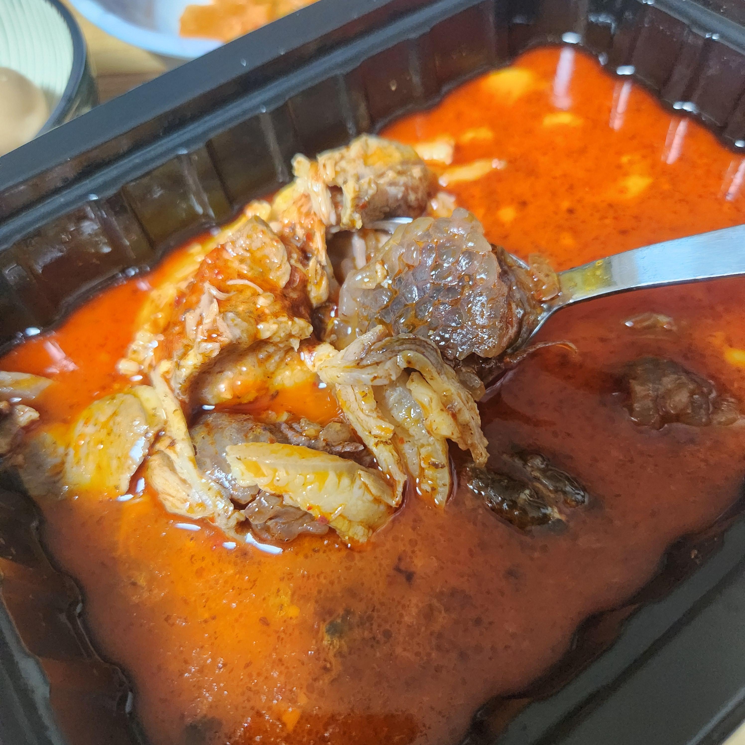 엄청엄청 매워요! 야채랑 이것저것 넣어도 너무 매워서 맵찔이인 저는 못 먹겠더라구요! 매운데 싱거워서 집에 있는 새우젓 조금 넣거나 진한 맛에 얼큰 조금 넣어 먹으면 적당히 매콤하게 먹을 수 있을 것 같아요!