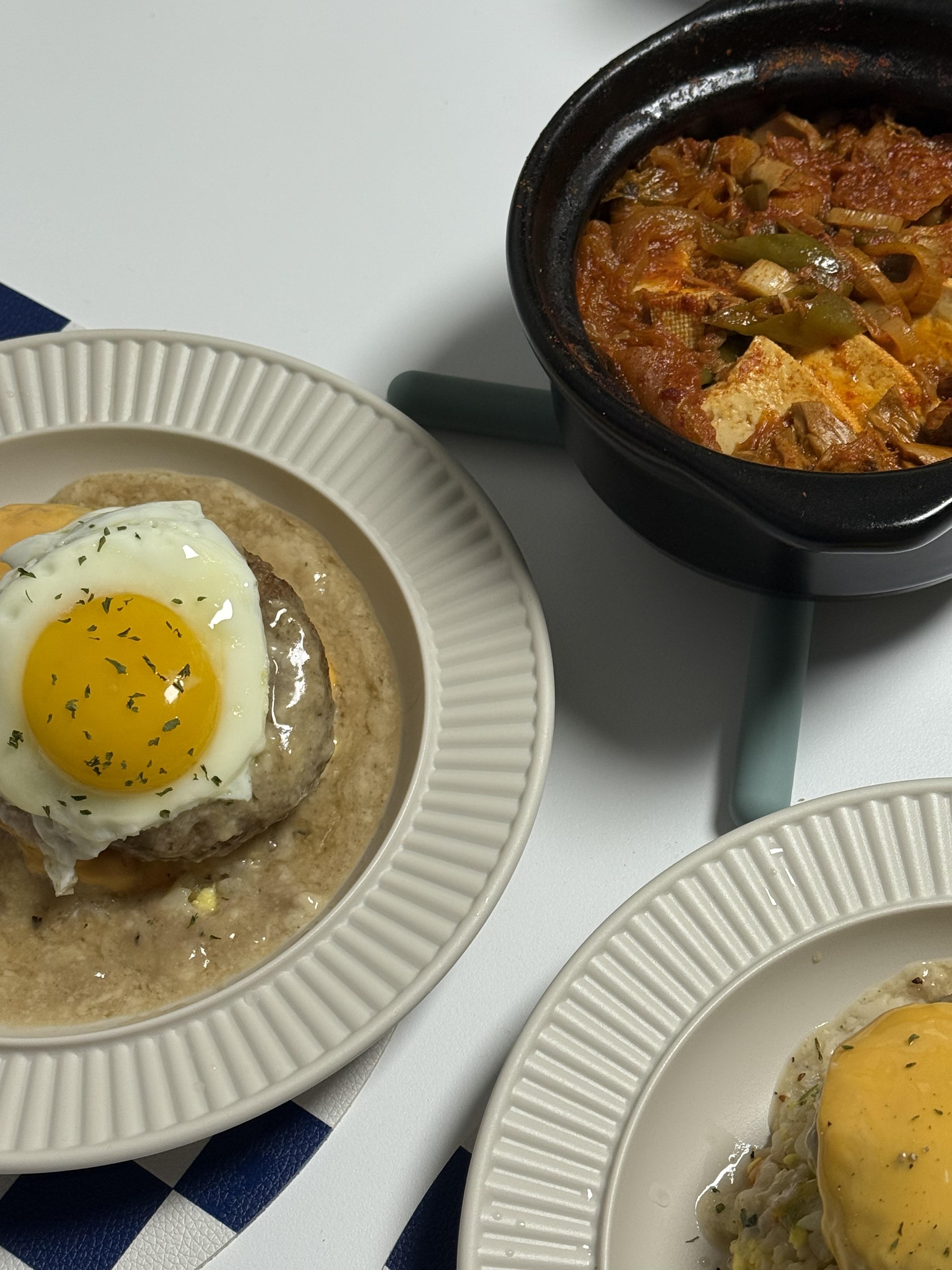 ② 로제 : 크림과 토마토소스를 섞어 만든 로제 소스 함박스테이크