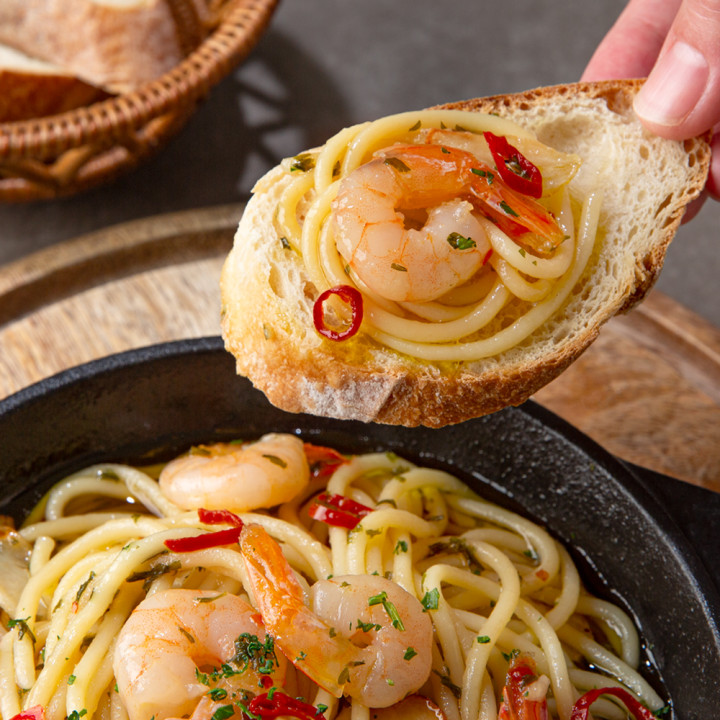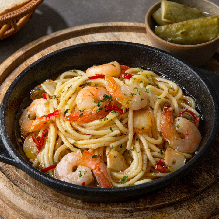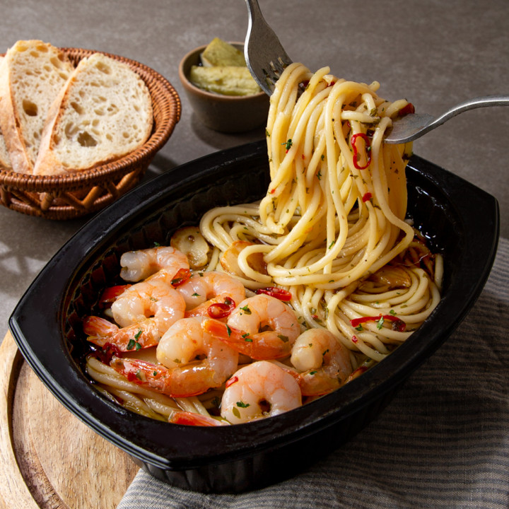 풍미 가득한 올리브오일에 감칠맛을 더하는 새우, 마늘 토핑의 감바스가 파스타로 나왔어요. 프라이팬도 필요 없는 전자레인지 조리 제품으로 간편하게 홈 파티 음식을 즐겨보세요.