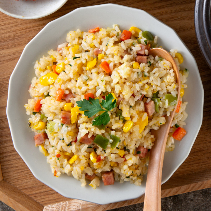 냉동상태의 볶음밥을 전자레인지용 용기에 담아 랩을 씌운 후 전자레인지 조리해 주세요.