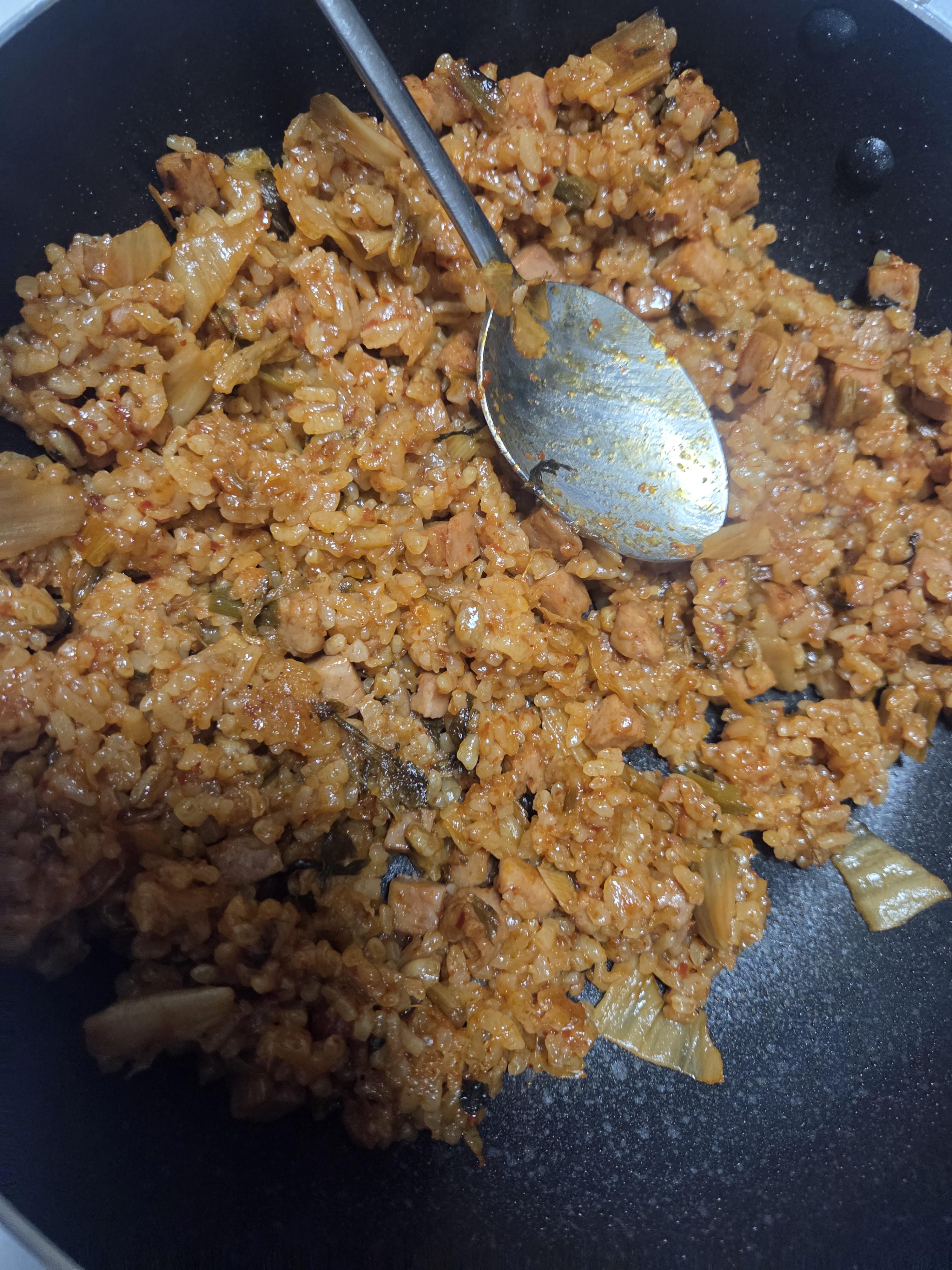김치 맛이 과하지 않고 불맛이 살아 있어서 한 그릇 뚝딱이에요~ 전자레인지로 간편하게 먹기 좋아서 바쁜 현대인들에게 최고입니다. 스팸 추가해서 먹었어요!