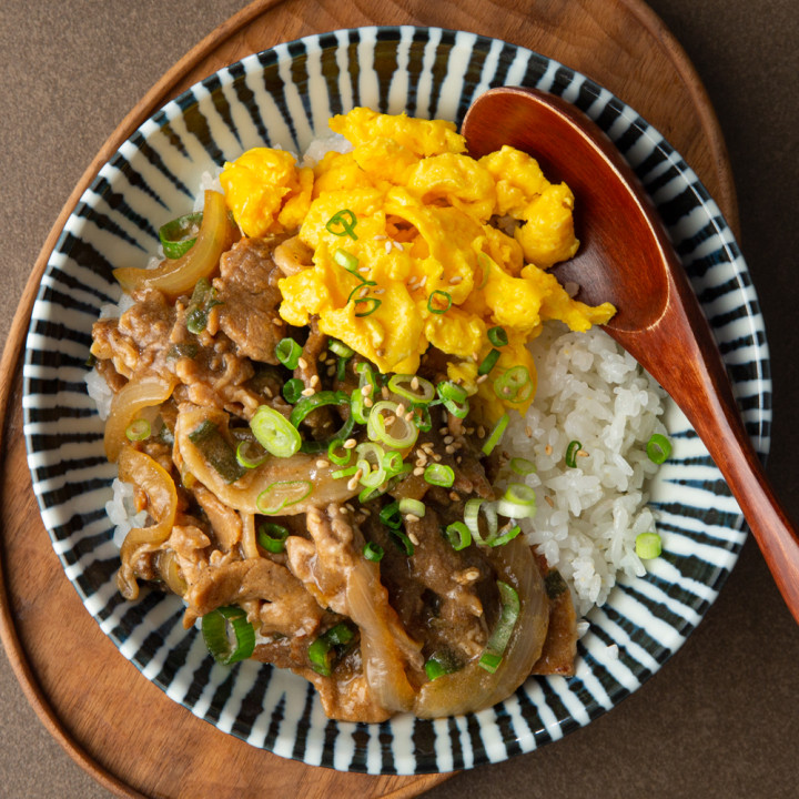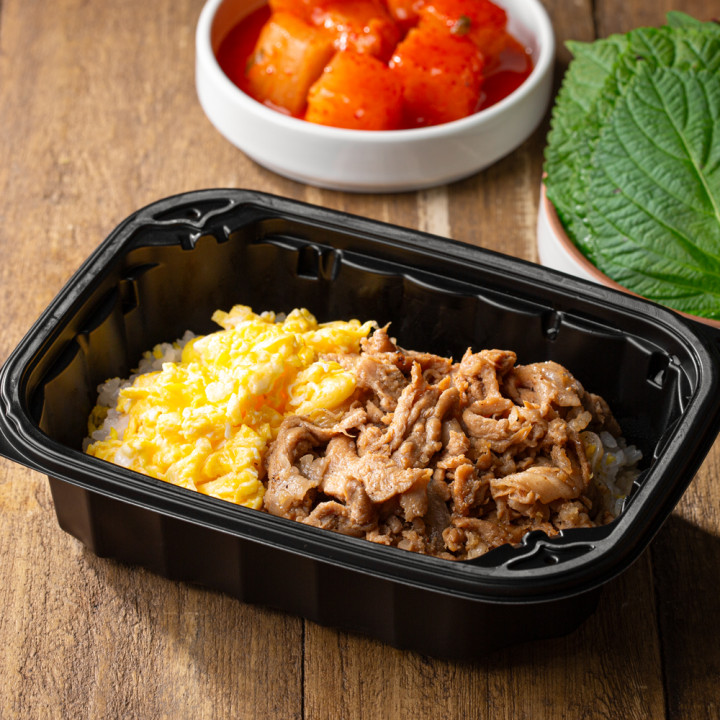 고기 반찬이 가득한 덮밥