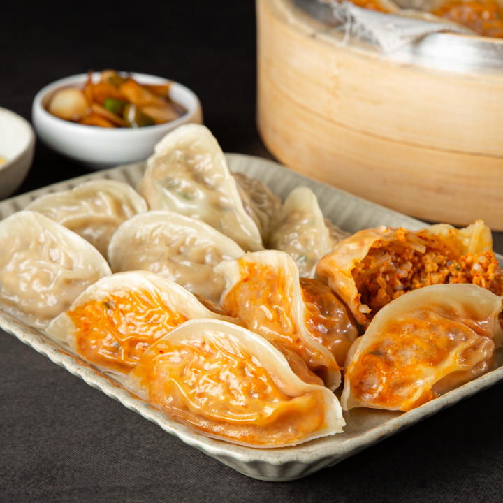 돼지고기와 야채가 황금비율로 들어간 담백한 고기만두와 매콤한 김치가 들어가 칼칼한 맛의 김치만두, 둘 다 포기 못하니 한 판에 즐겨야죠. 전자레인지 조리에도 갓 찐 듯한 촉촉한 만두 육즙을 맛볼 수 있어요. 고기만두, 김치만두 둘 다 포기할 수 없다면 반반만두를 찾아주세요.