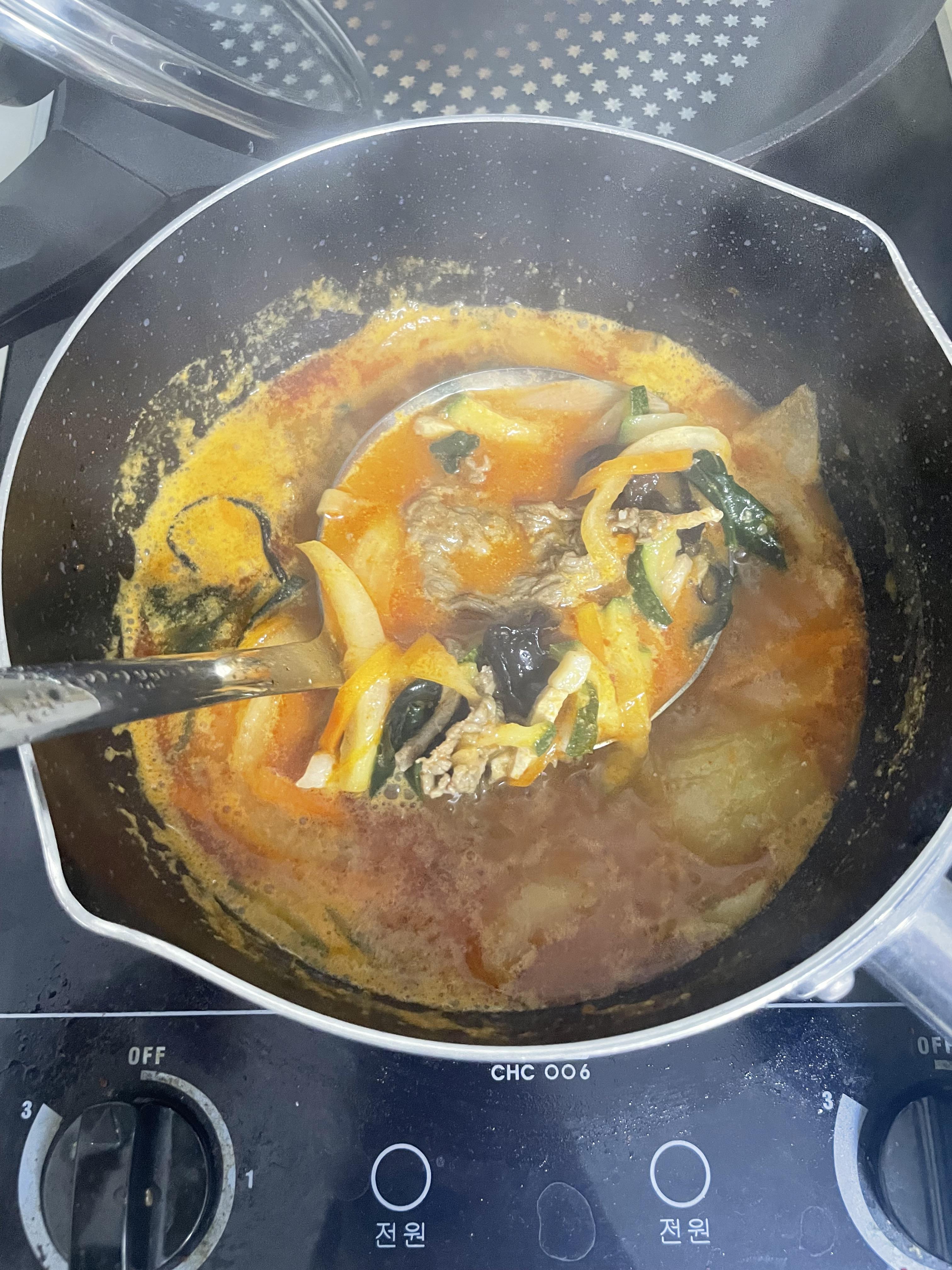 이거 진짜 맛있어요!! 저는 집에 있는 자투리야채랑 우동면 넣어서 끓이느라 물 좀 더 추가해서 끓였는데도 국물이 깊고 진하고 불향도 나서 엄청 맛있네요ㅎㅎ따로 재료 추가하지 않아도 기본으로 야채, 목이버섯, 고기도 듬뿍 들어있어서 가성비 최고입니다?