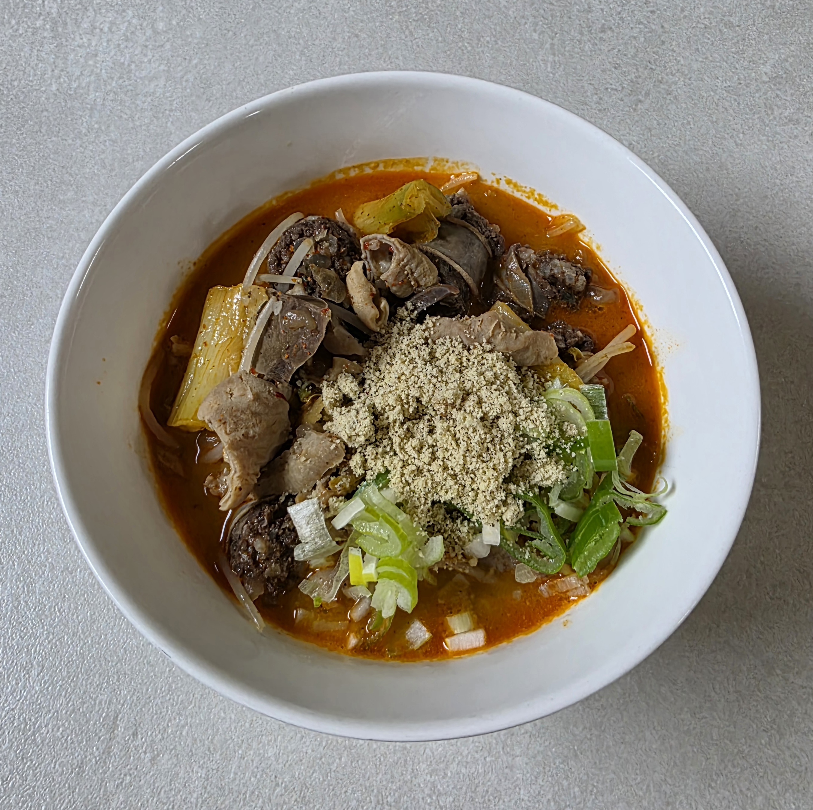 | 원재료명 | 면: 소맥분(밀:미국산,호주산), 변성전분, 팜유(말레이시아산), 글루텐(프랑스산), 정제소금), 면류첨가알칼리제(산도조절제), 난각분말, 야채추출물, 비타민B2, 녹차풍미유 |