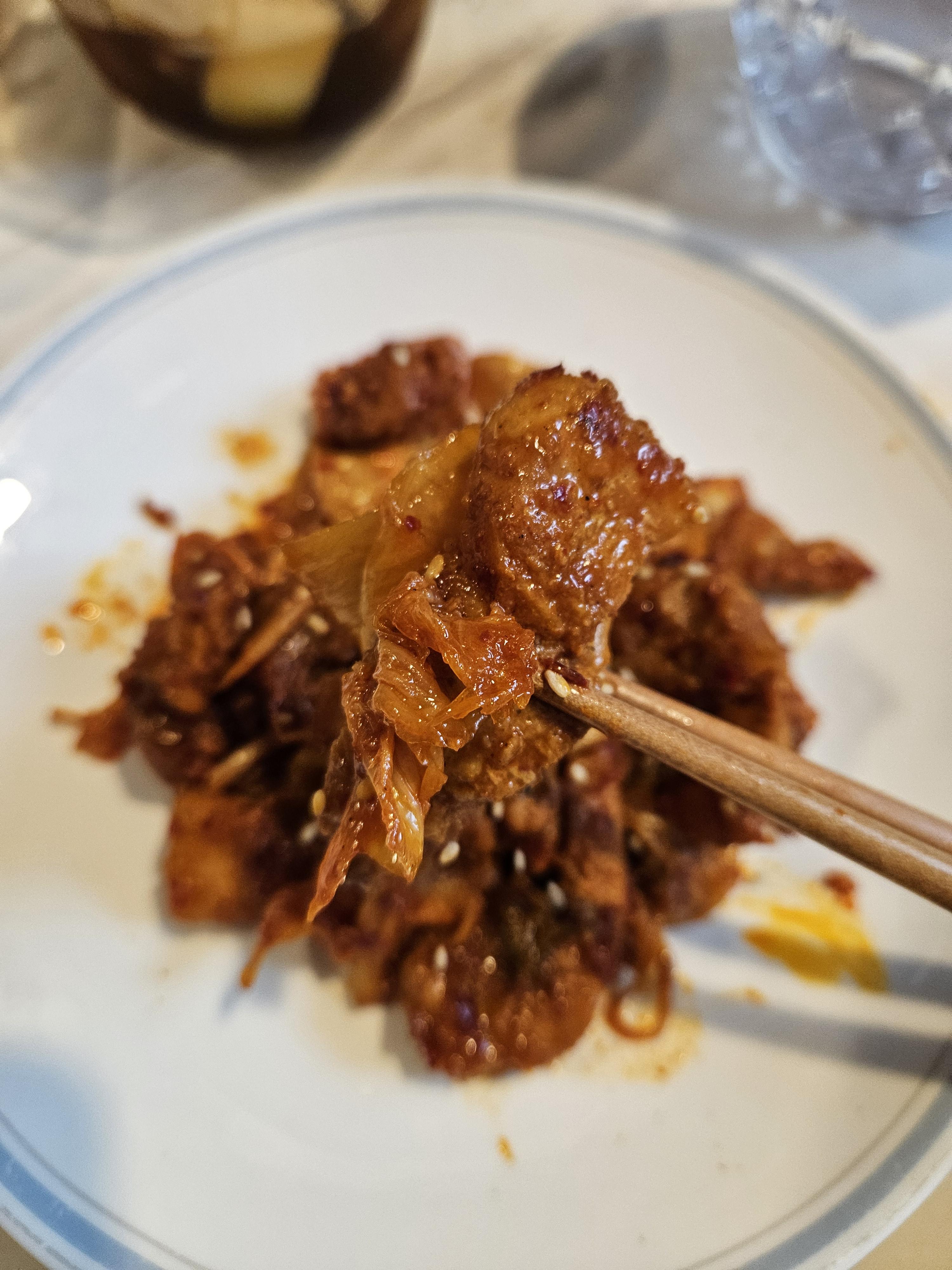 처음 시켜 먹어봤는데 진짜 굿굿? 솔직히 김치랑 돼지고기의 조합은 말하지 않아도 알잖아요? 양도 꽤 많이 들어있고 고기도 퍽퍽하지 않고 살코기랑 비계가 적당히 어우러져 있어서 진짜 부드럽고 김치도 새김치가 아니라 좀 익은 김치 넣어주시고 양념이 맛있어서 진짜 굿!! 이거 있으면 다른 반찬 필요 없고 갓지은 밥위에 김치랑 고기 올리고 김에 싸먹으면 진짜 한끼 뚝딱이에요! 다음에 또 주문해서 먹고 싶을 정도로 너무 맛있었어요ㅠㅠ