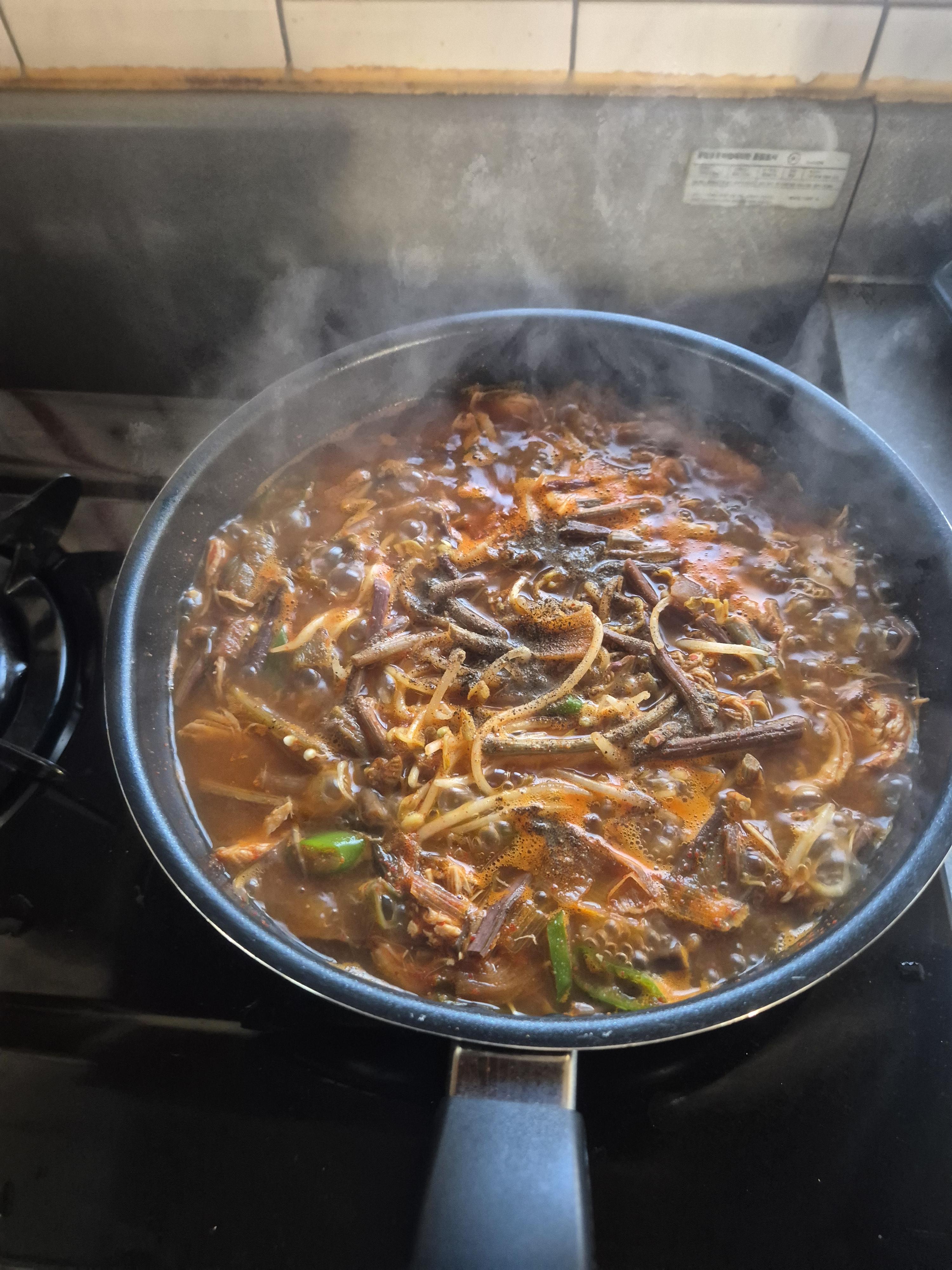 숙주랑 고사리만 한줌 추가해서 끊였는데 전문점에서 만원내고 먹는거랑 비슷해요 ㅋㅋ 추운데 뜨끈하게 드셔보세요 만족하실거에용