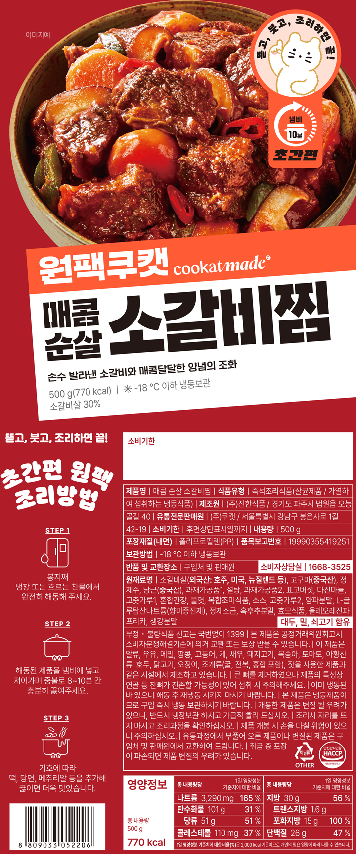 원팩쿠캣 순살 소갈비찜 2종