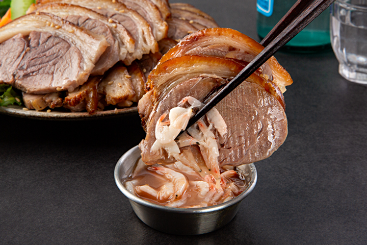 새우젓 족발에 빠질 수 없는 감칠맛, 새우젓을 찍어 먹거나 쌈에 함께 올려드세요.
