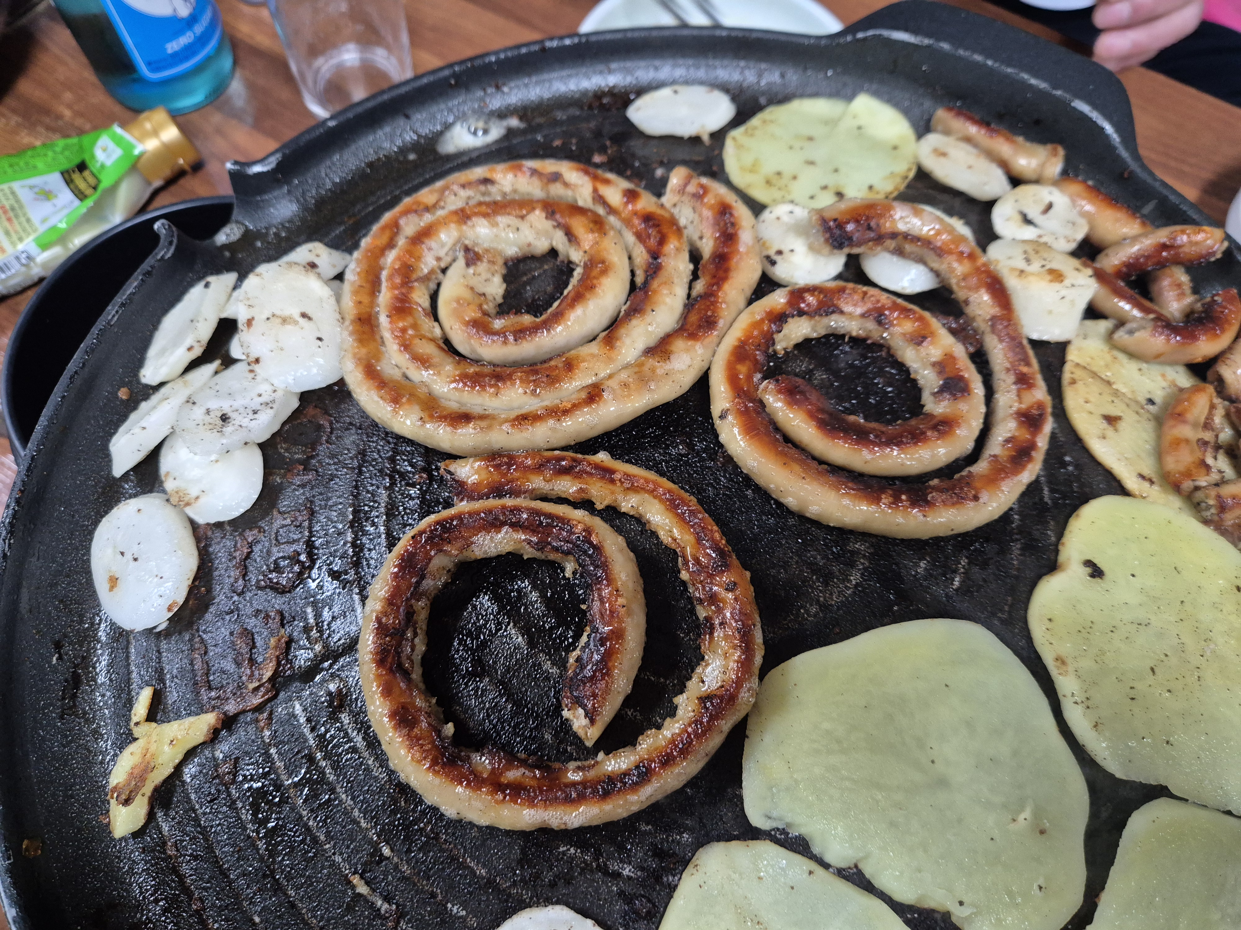 집에서 고기 구울 때, 양파와 마늘, 새송이버섯 넣어 같이 먹었는데 오늘 문득 "곱창 구울 때도 넣어 볼까?"하는