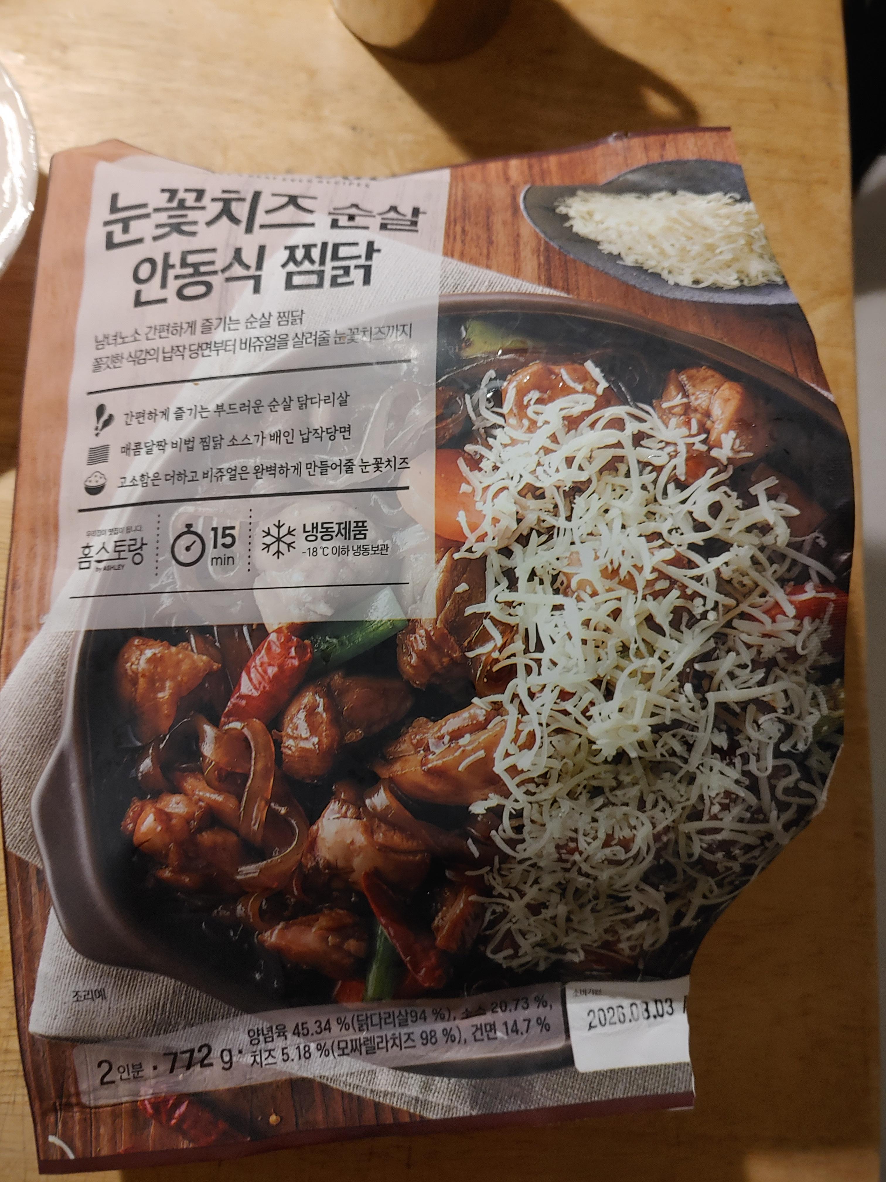 매콤하면서도 달짝지근한 양념에 부드러운 순살, 하얗게 쌓인 눈꽃치즈까지 맛도 비쥬얼도 파티 음식으로 딱이에요. 찜닭 소스가 쏙 배인 납작당면과 야채도 빠질 수 없죠. 맛있는 찜닭을 위한 재료를 빠짐없이 넣었으니 간편히 조리해 즐겨보세요!