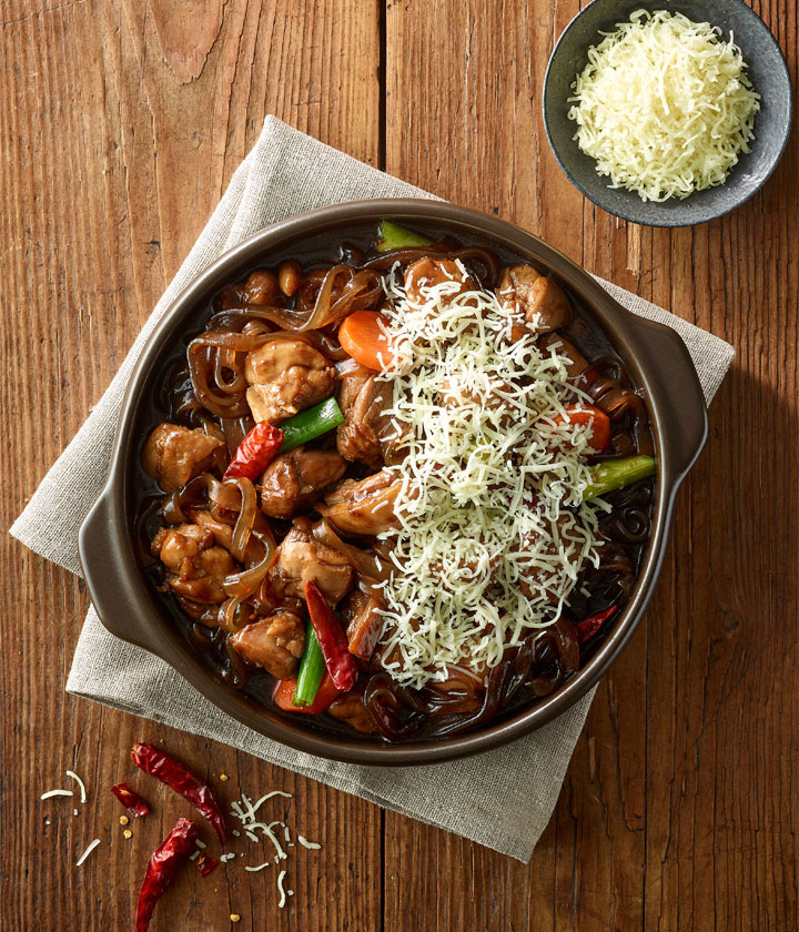 매콤하면서도 달짝지근한 양념에 부드러운 순살, 하얗게 쌓인 눈꽃치즈까지 맛도 비쥬얼도 파티 음식으로 딱이에요. 찜닭 소스가 쏙 배인 납작당면과 야채도 빠질 수 없죠. 맛있는 찜닭을 위한 재료를 빠짐없이 넣었으니 간편히 조리해 즐겨보세요!