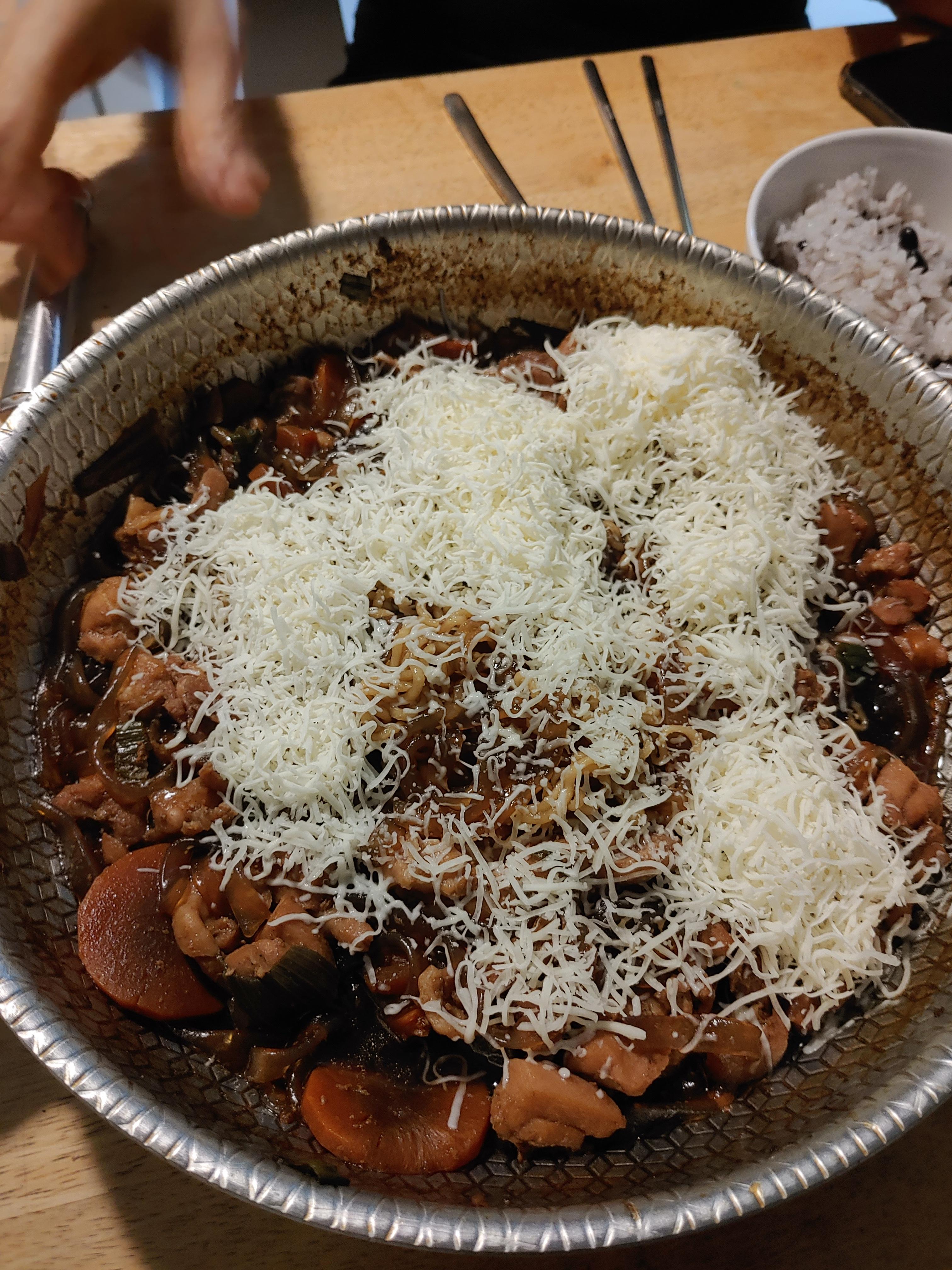 이름부터 맛없없 아닙니까 배달로 찜닭 시켜 먹을라면 2-3만원 금방 깨지는데 여기서 시키면 만원에 행복 아닌가요 만원대에 당면도 들어있다 ? 완전 혜자다 찜닭에 고추가 들어있는데 그거 넣으시면 꽤 맵습니다 매운거 못드시는분들이나 애기들 있으신 분들은 따로 빼고 조리 하거나 나중에 맛 보면서 추가하시는거 추천 드려요 그리고 눈꽃치즈 레전드 맛있어욯ㅎㅎㅎㅎෆ 치즈 녹은 모습 너무 사랑스럽당 ㅎㅎㅎㅎㅎෆ
