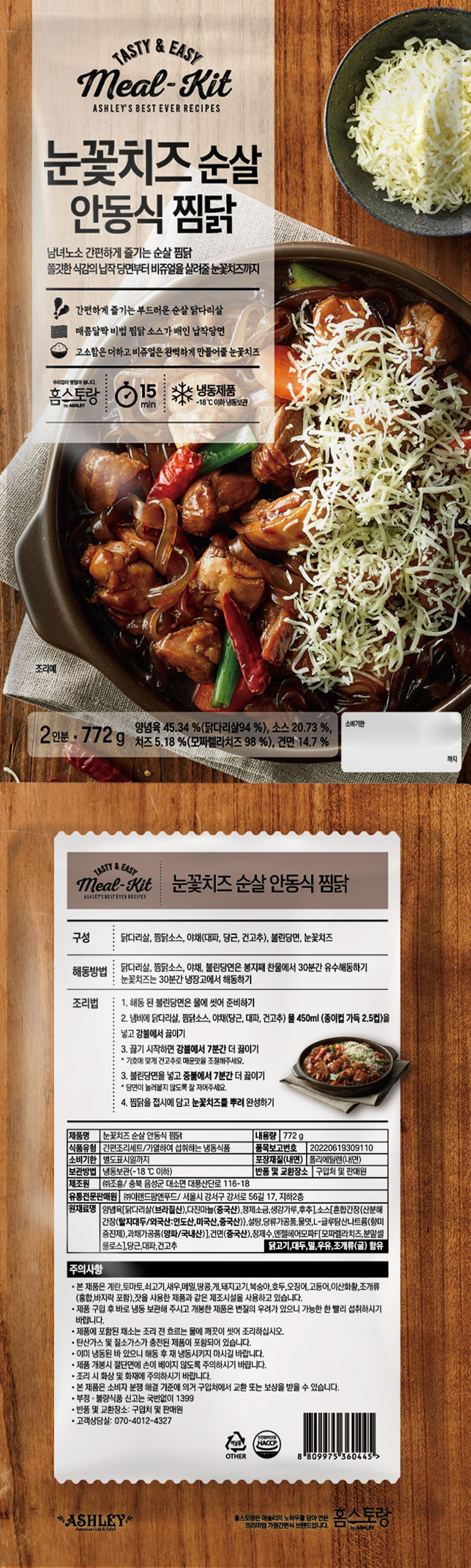 애슐리 눈꽃치즈 순살 안동식 찜닭 772g