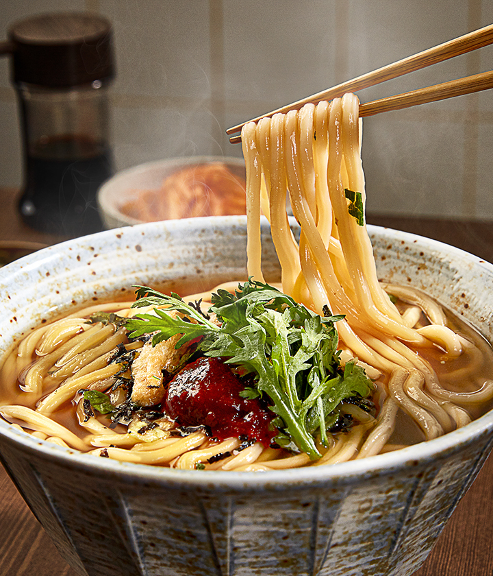 ① 즉석우동 :국물을 가득 머금은 유부, 향긋한 쑥갓으로 속이 풀리는 맛의 우불식당 대표 메뉴 ② 냉모밀 :고소하고 부드러운 식감의 튀기지 않은 숙면에 무와 와사비를 더해 감칠맛 가득한 메뉴