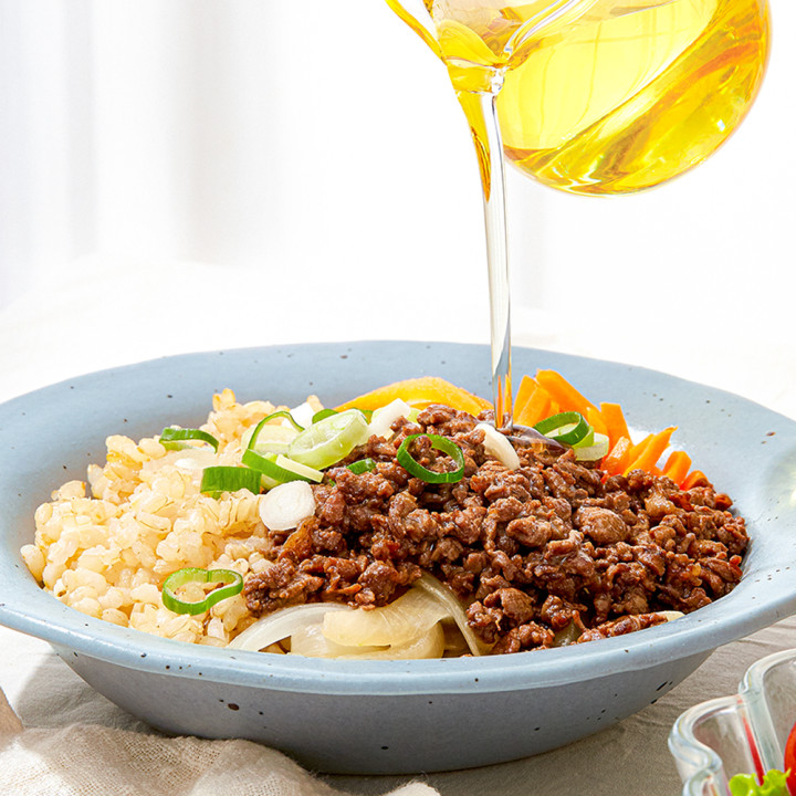 국내산 현미밥 베이스에 다양한 채소, 고기가 어우러져 푸짐한 한 끼로 제격이죠.