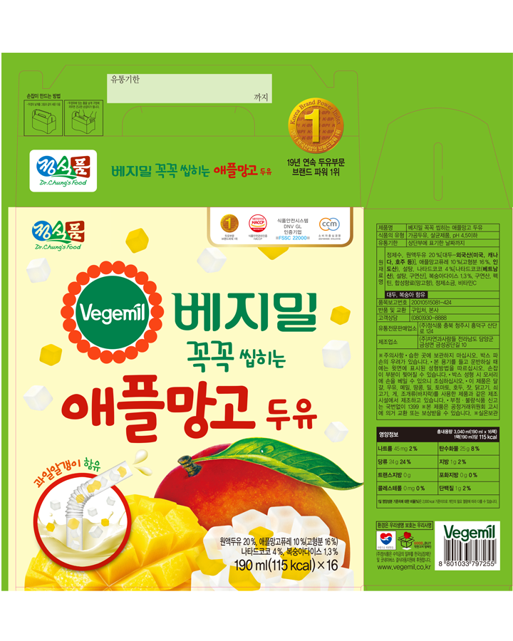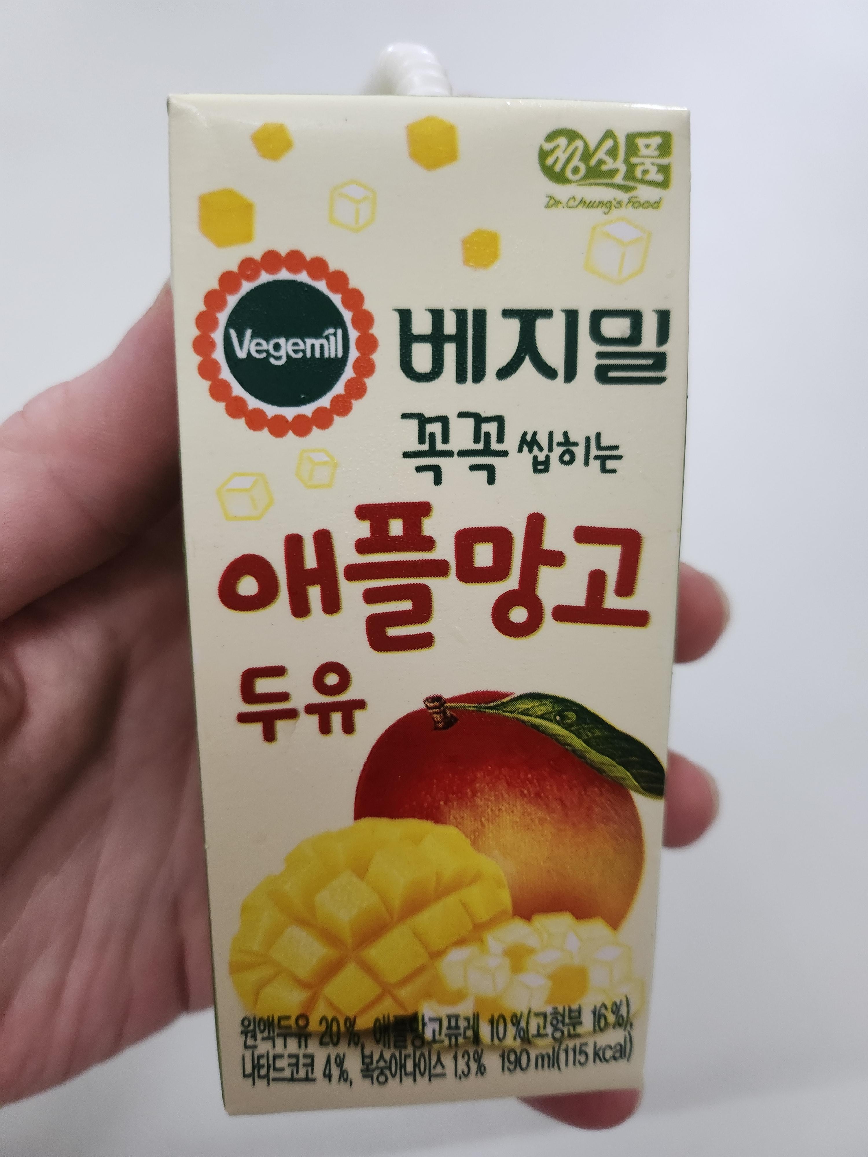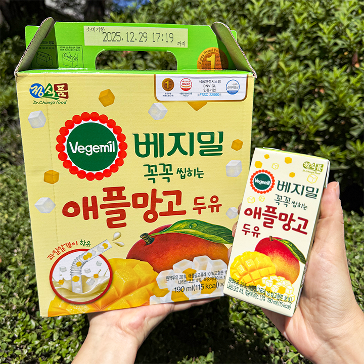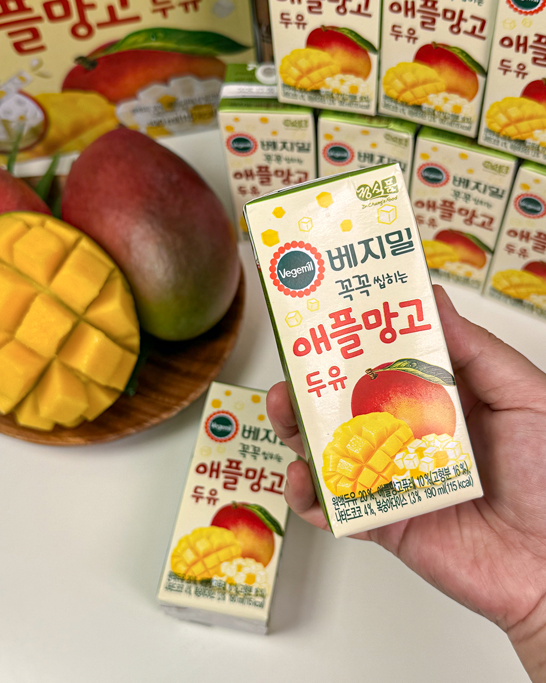 택배 발송 상품 ✅ 상품명 : 쿠캣신공 X 베지밀 꼭꼭 씹히는 애플망고두유 190ml ⚠️ 한정 수량으로 조기 소진 시 품절될 수 있습니다.